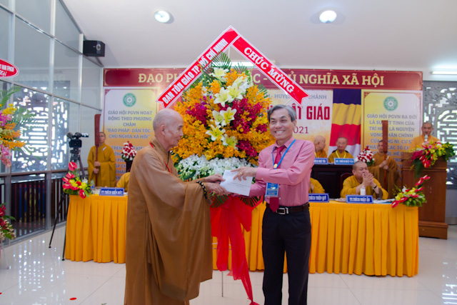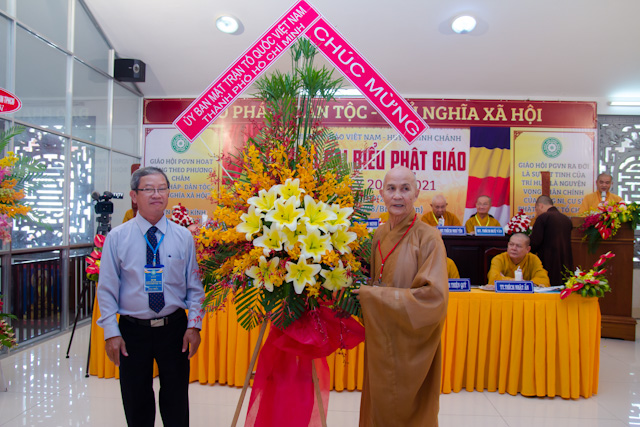Sau lời phát biểu khai mạc của Hòa thượng Trưởng Ban. Hội nghị cũng đón nhận nhiều lẵng hoa và quà chúc mừng từ các tổ chức, cá nhân gửi đến chúc mừng Đại hội.
