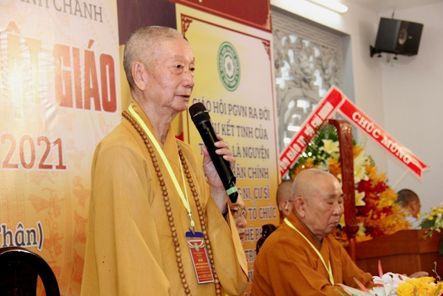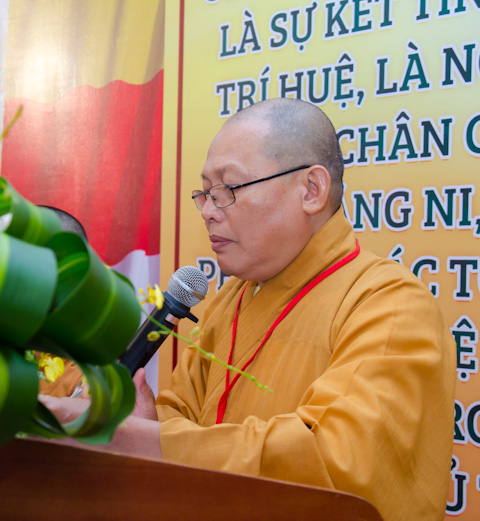 Thay mặt thường trực BTS PG TP.HCM, HT. Thích Thiện Tánh – Phó Chủ tịch HĐTS, Phó trưởng Ban thường trực lấy ý kiến Đại biểu để thông qua danh sách nhân sự nhiệm kỳ IX, 2016 – 2021 tân BTS GHPGVN huyện Bình Chánh.