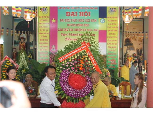 Với phần chào quốc kỳ, đạo kỳ và dâng hoa cúng dường là phần diễn văn khai mạc do Thượng tọa Thích Huệ Nghĩa trưởng Ban trị sự PG nhiệm kỳ VII, Hồng Ngữ là huyện biên giới nên Phật giáo có phần đang phát triển là do sự chỉ đạo của Ban trị sự PG tỉnh Đồng Tháp, các vị lãnh đạo Nhà nước làm tiền đề cho Phật giáo huyện Hồng ngự phát triển trong nhiệm kỳ này.