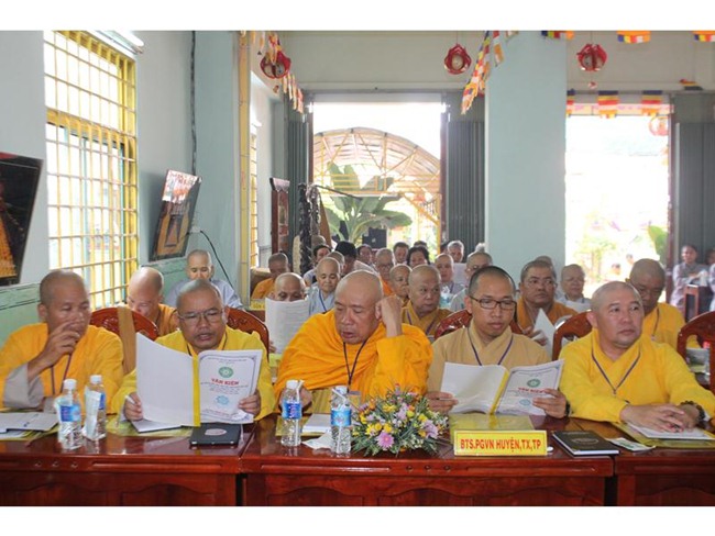 Đại hội đã được nghe phần báo cáo do Đại đức Thích Thiền Chơn; với tổng số 13 tự viện, 45 tăng ni, và từ thiện xã hội trong nhiệm kỳ VII với hơn 7 tỷ đồng. Phương hướng hoạt động Phật sự nhiệm kỳ VIII, tiếp tục giải quyết những vấn đề còn tồn đọng của nhiệm kỳ cũ, phát huy tinh thần an sinh xã hội và hoằng pháp tại Phật giáo huyện nhà, và thực hiện những Nội quy Ban tăng sự, hiến chương Phật giáo và luật pháp của nhà nước.