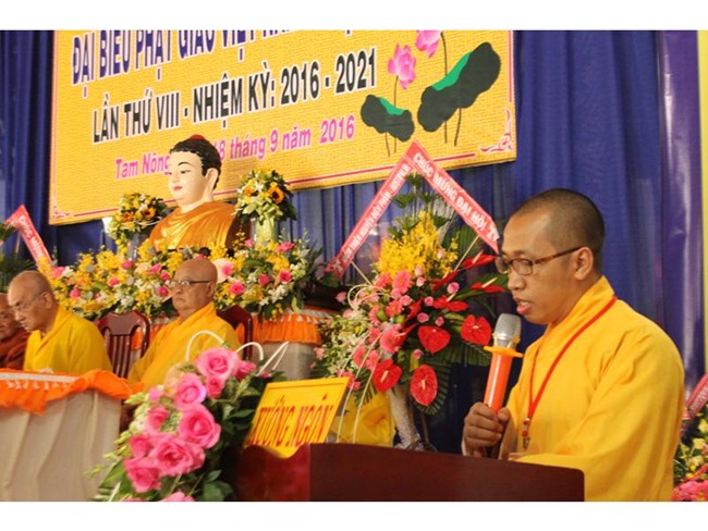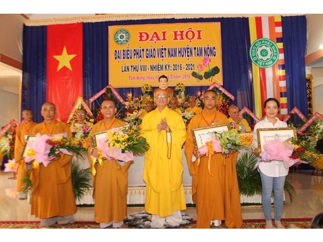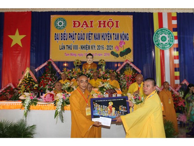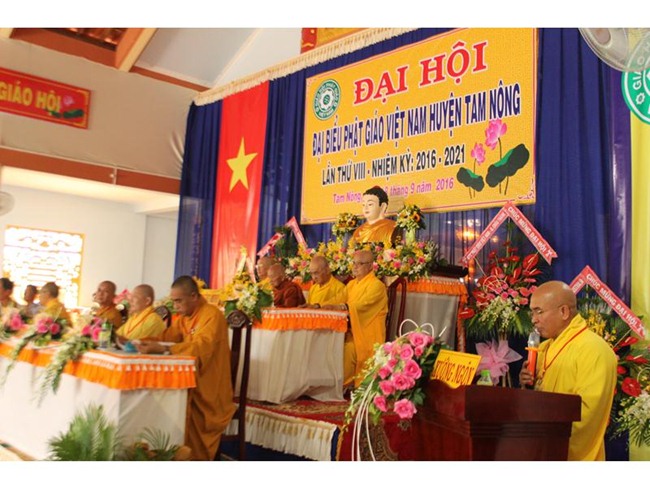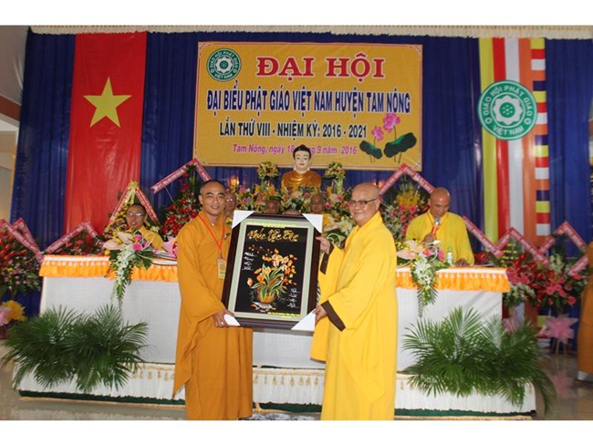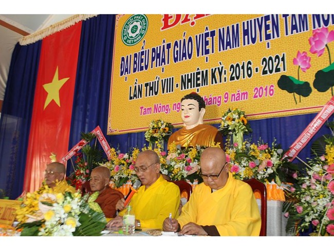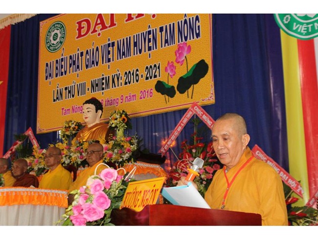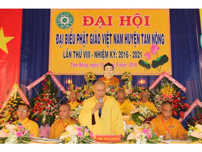 Hòa thượng Thích Thiện Huệ chứng minh đã ban lời đạo từ tuyên dương công đức chư Tôn đức trong BTS PG huyện Tam Nông đã thực hiện đúng thông tư của HĐTS đã tổ chức Đại hội Phật giáo thành công, và cũng gửi lời tri ân đến các cấp chức năng hỗ trợ và giúp đỡ cho Tân BTS hoạt động tốt trong nhiệm kỳ 2016-2021 sắp tới, Đại đức tân trưởng BTS phải luôn chấp hành đúng hiến Chương Phật giáo và hiến Pháp nhà nước hiện hành phát huy phát triển Phật giáo Tam nông….Đại hội đã được lắng nghe diễn văn bế mạc của Đại Đức Thích Thiện Quý, trong niềm hoan hỷ và trang nghiêm đoàn kết.