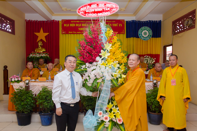 Dịp này, Tân Ban Trị sự Quận Bình Tân cũng đã nhận được nhiều lẳng hoa chúc mừng từ các cấp giáo hội, các cấp chính quyền và Phật tử gần xa.