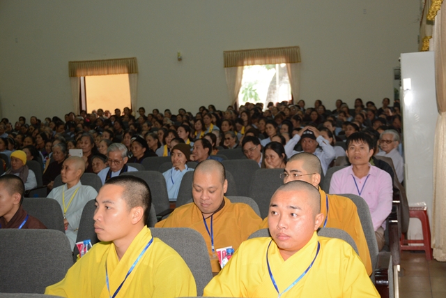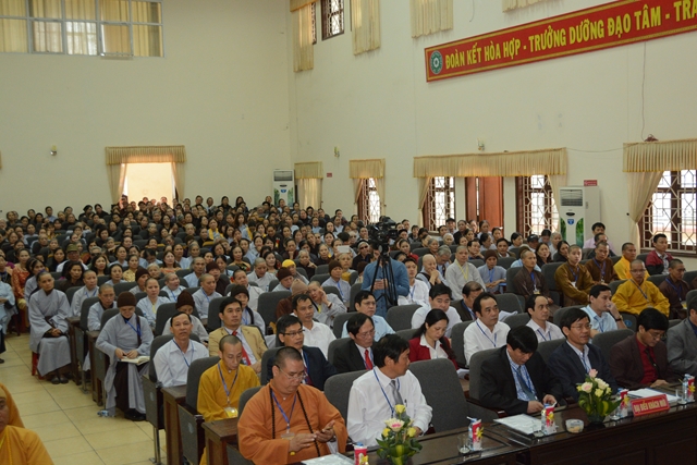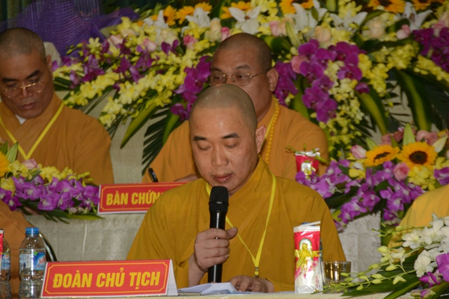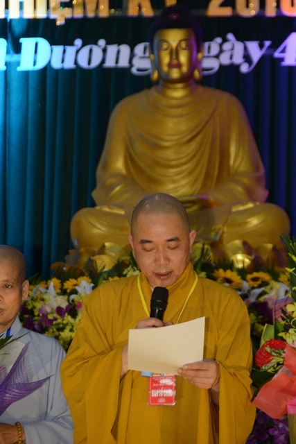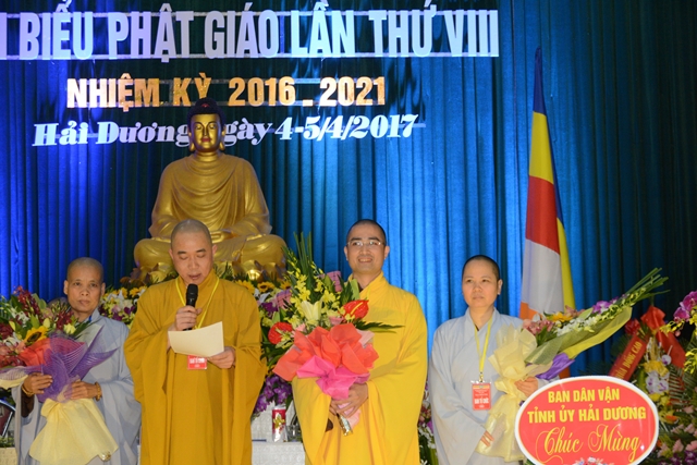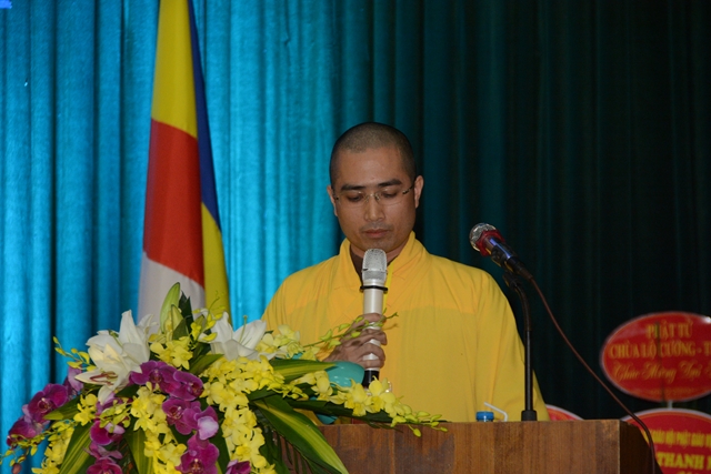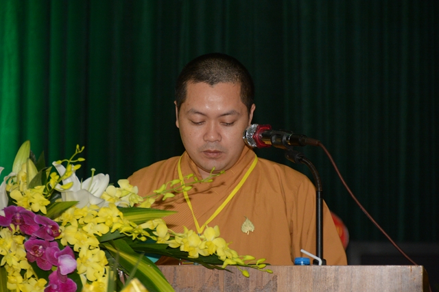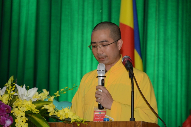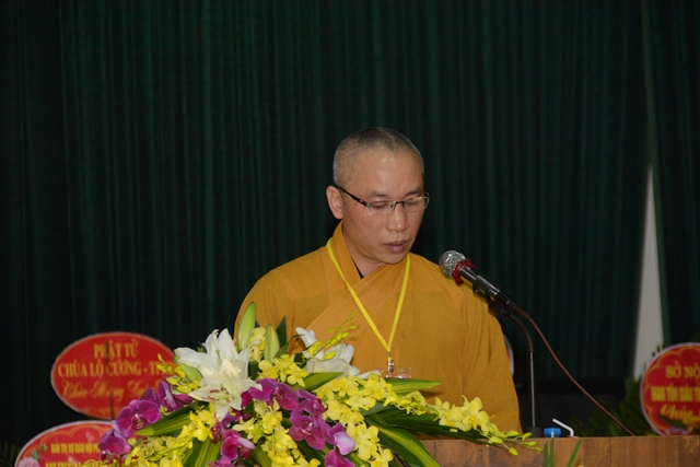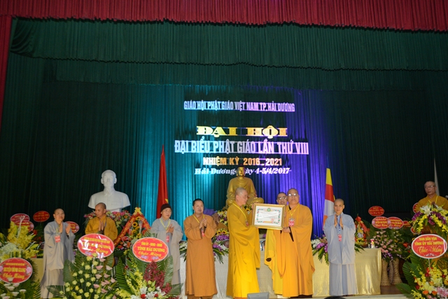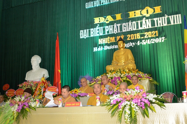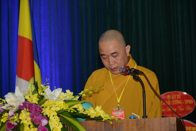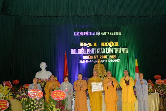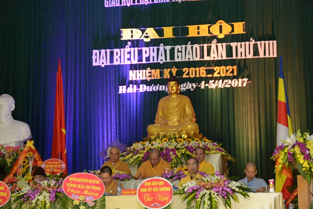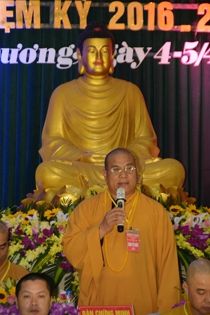 Tiếp đó, Đại đức Thích Thanh Long – Phó BTS GHPGVN thành phố Hải Dương nhiệm kỳ VII đã lên tuyên đọc dự thảo báo cáo tổng kết công tác Phật sự nhiệm kỳ VII (2012-2016) và trình bày phương hướng hoạt động Phật sự nhiệm kỳ VIII (2016-2021) của Ban trị sự GHPGVN thành phố Hải Dương. Trong nhiệm kỳ vừa qua, BTS GHPGVN thành phố Hải Dương dưới sự chỉ đạo trực tiếp của BTS GHPGVN tỉnh, đã thành tựu được nhiều hoạt động Phật sự trọng đại, có đường lối hoạt động đúng đắn theo phương châm: “ Đạo Pháp – Dân tộc – Chủ nghĩa xã hội”, phát huy tinh thần “ Đoàn kết – Hòa hợp – Trưởng dưỡng đạo tâm – Trang nghiêm giáo hội, Ban trị sự đã chỉ đạo, kết hợp cùng chư tôn đức Tăng Ni trụ trì các cơ sở tự viện, tích cực hoạt động và đã đạt được nhiều thành quả khả quan trong các công tác Phật sự – xã hội, khẳng định được niềm tin sâu sắc của các Tự viện, Tăng Ni và Phật tử đối với Giáo hội.
