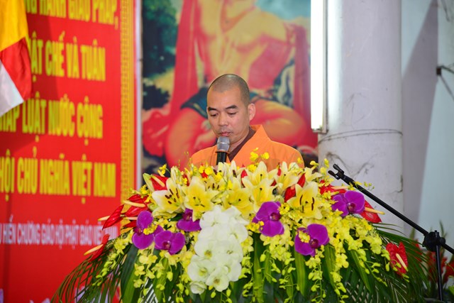 HT. Thích Quảng Tùng thay mặt tân BTS GHPGVN thành phố phát biểu nhận nhiệm vụ