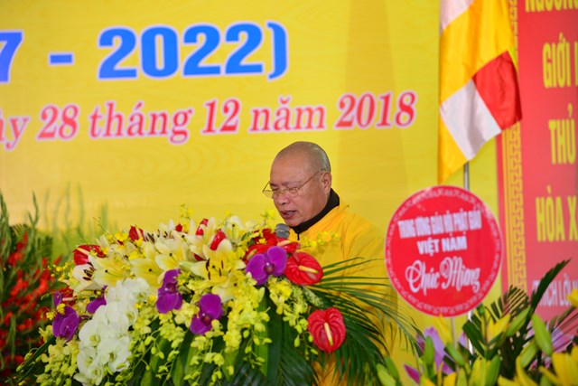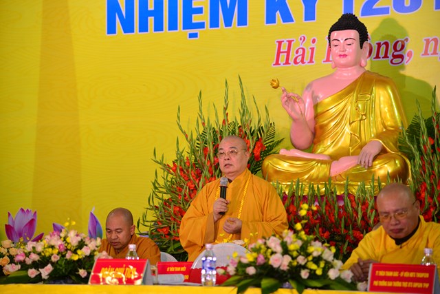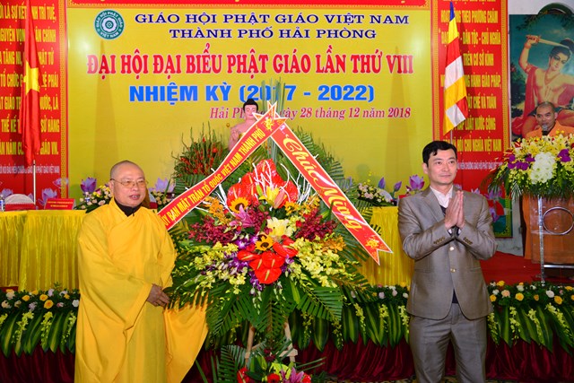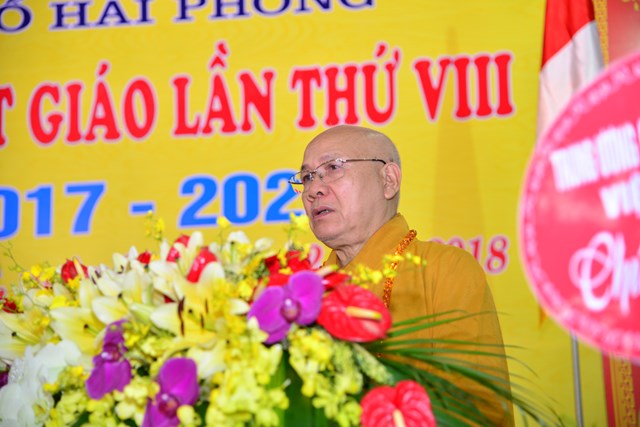 Theo ông: “ Tuy Đại hội Đại biểu Phật giáo thành phố Hải Phòng có tổ chức muộn hơn so với các tỉnh thành trong cả nước, nhưng đó cũng chính là nhân duyên và cũng là một niềm vui bởi vì dù sao BTS GHPGVN thành phố Hải Phòng cũng đã hoàn thành tốt các công tác Phật sự của nhiệm kỳ Đại hội VII (2012 – 2017). Hy vọng sau Đại hội đại biểu Phật giáo thành phố lần này, Phật giáo Hải Phòng sẽ đoàn kết thống nhất từ lãnh đạo Phật giáo thành phố cho tới chư tôn đức Tăng Ni đang trụ trì tại các chùa. Những gì đã qua chúng ta thực hiện đúng tinh thần của Đức Phật là cho qua. Những gì trước mắt đó chính là sự đoàn kết, sự kính trọng đối với Phật giáo và niềm tin tưởng đối với lãnh đạo chính quyền các cấp, làm sao để Phật giáo tỏ rõ được truyền thống của mình, xứng đáng là một tôn giáo có bề dày lịch sử, một tôn giáo gắn bó đồng hành cùng Dân tộc trong tiến trình dựng nước và giữ nước. Ngày hôm nay, Phật giáo tiếp tục thể hiện tinh thần đó, bằng những đóng góp xây dựng quê hương Hải Phòng để mỗi quận huyện đều có chùa, có các vị thầy hướng dẫn tu học. Để làm được vấn đề này rất cần đến sự đóng góp của chư tôn đức Tăng Ni BTS GHPGVN thành phố Hải Phòng…”