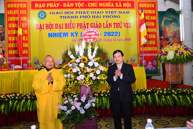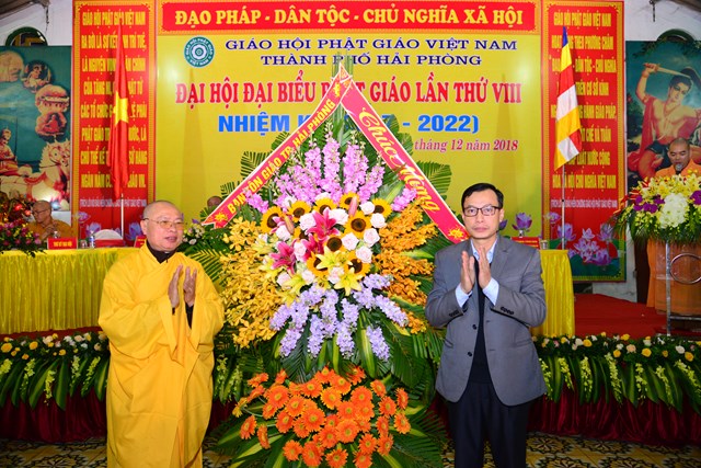 Trong nhiệm kỳ vừa qua, Phật giáo thành phố Hải Phòng luôn luôn nhận được sự quan tâm giúp đỡ của Đảng – Chính quyền – Mặt trận Tổ quốc các cấp trong các hoạt động Phật sự. Thay mặt lãnh đạo Ban tôn giáo Chính Phủ, TS. Bùi Hữu Dược – Vụ trưởng vụ Phật giáo Ban tôn giáo Chính Phủ đã phát biểu chúc mừng Đại hội Đại biểu Phật giáo thành phố Hải Phòng lần thứ VIII nhiệm kỳ 2017 – 2022.