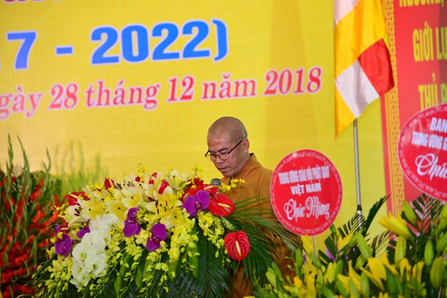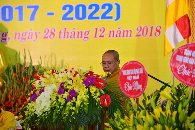 Tiếp đó, Thượng tọa Thích Tục Khang – Phó BTS GHPGVN thành phố Hải Phòng thay mặt BTS GHPGVN thành phố Hải Phòng lên Báo cáo tổng kết công tác Phật sự khóa VII, nhiệm kỳ 2012 – 2017 và nêu lên phương hướng hoạt động Phật sự khóa VIII, nhiệm kỳ 2017 – 2022.