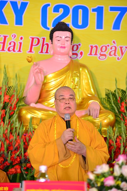 Ông cũng khẳng định: “ Hải Phòng là cái nôi của Phật giáo trong cả nước và Phật giáo Hải Phòng đã có truyền thống đoàn kết từ lâu đời, luôn là lá cờ đầu tiêu biểu trong các phong trào của Phật giáo”. Ông mong rằng trong thời gian tới, chư tôn đức Tăng Ni Hải Phòng tiếp tục đóng góp cho Giáo hội, cho công cuộc xây dựng Đất nước… Và đại chúng hãy tôn kính, trân trọng và giúp đỡ các vị Thầy bởi họ chính là những người đã tận hiến trên con đường tu hành, nhưng cũng đang trên con đường tu tập. Ngược lại, các vị Thầy trên con đường tận hiến của mình thì cũng phải hết lòng phụng sự Đạo pháp và xã hội. Nếu cả hai đối tượng cùng cố gắng thì chắc chắn cả Đạo Pháp và xã hội đều phát triển tốt đẹp.
