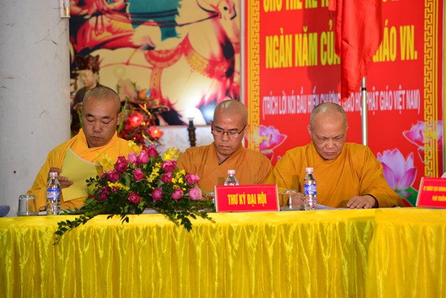 Tiếp đó, Thượng tọa Thích Thanh Hiển – Chánh thư ký BTS GHPGVN thành phố Hải Phòng đã thay mặt Ban thư ký Đại hội trình bày Dự thảo nghị quyết Đại hội. Hòa thượng Thích Quảng Tùng thay mặt cho Đoàn chủ tọa lấy ý kiến thông qua Nghị quyết và nhận được sự đồng thuận nhất trí của toàn thể Đại hội.