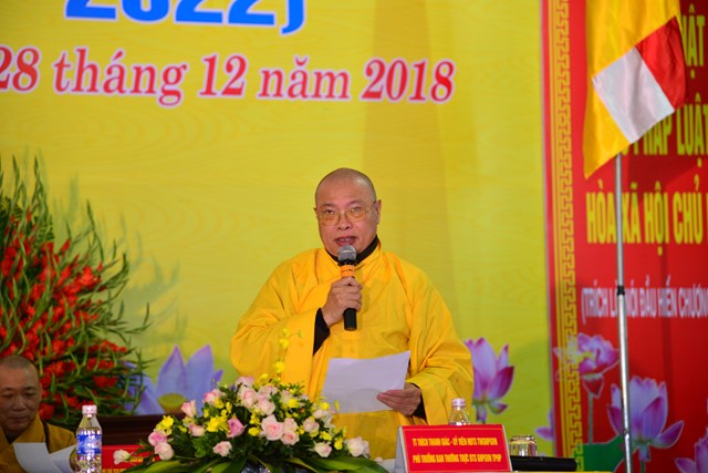 TT. Thích Thanh Hiển trình bày dự thảo nghị quyết Đại hội