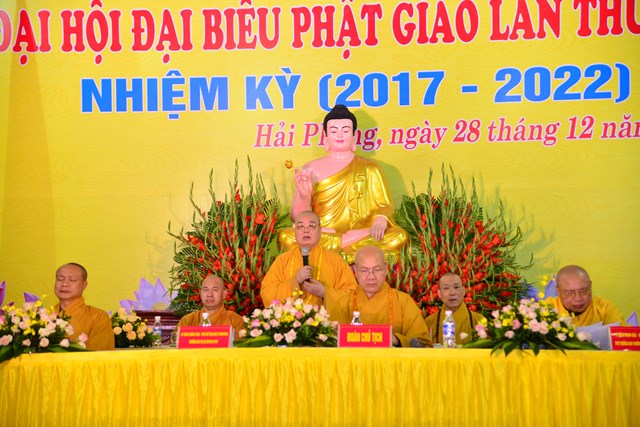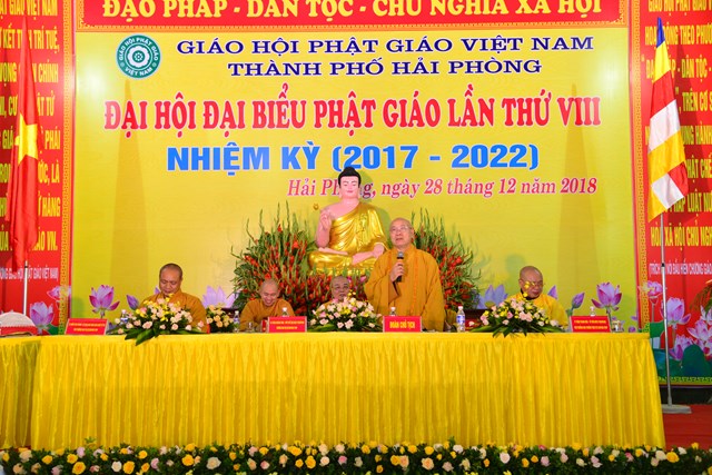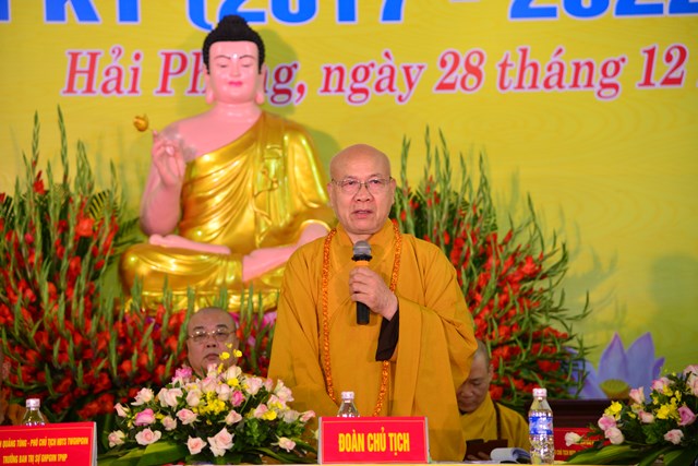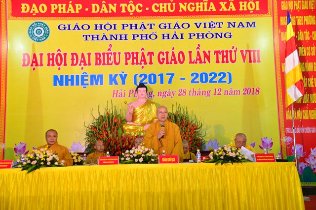 Theo ông: “ Tuy Đại hội Đại biểu Phật giáo thành phố Hải Phòng có tổ chức muộn hơn so với các tỉnh thành trong cả nước, nhưng đó cũng chính là nhân duyên và cũng là một niềm vui bởi vì dù sao BTS GHPGVN thành phố Hải Phòng cũng đã hoàn thành tốt các công tác Phật sự của nhiệm kỳ Đại hội VII (2012 – 2017). Hy vọng sau Đại hội đại biểu Phật giáo thành phố lần này, Phật giáo Hải Phòng sẽ đoàn kết thống nhất từ lãnh đạo Phật giáo thành phố cho tới chư tôn đức Tăng Ni đang trụ trì tại các chùa. Những gì đã qua chúng ta thực hiện đúng tinh thần của Đức Phật là cho qua. Những gì trước mắt đó chính là sự đoàn kết, sự kính trọng đối với Phật giáo và niềm tin tưởng đối với lãnh đạo chính quyền các cấp, làm sao để Phật giáo tỏ rõ được truyền thống của mình, xứng đáng là một tôn giáo có bề dày lịch sử, một tôn giáo gắn bó đồng hành cùng Dân tộc trong tiến trình dựng nước và giữ nước. Ngày hôm nay, Phật giáo tiếp tục thể hiện tinh thần đó, bằng những đóng góp xây dựng quê hương Hải Phòng để mỗi quận huyện đều có chùa, có các vị thầy hướng dẫn tu học. Để làm được vấn đề này rất cần đến sự đóng góp của chư tôn đức Tăng Ni BTS GHPGVN thành phố Hải Phòng…”