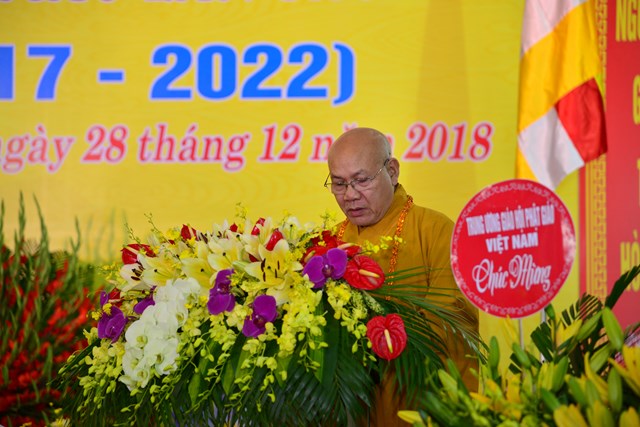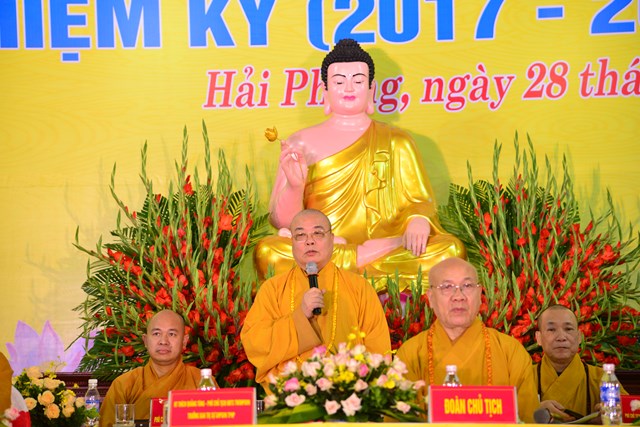 Tiếp đó, Thượng tọa Thích Tục Khang – Phó BTS GHPGVN thành phố Hải Phòng thay mặt BTS GHPGVN thành phố Hải Phòng lên Báo cáo tổng kết công tác Phật sự khóa VII, nhiệm kỳ 2012 – 2017 và nêu lên phương hướng hoạt động Phật sự khóa VIII, nhiệm kỳ 2017 – 2022.