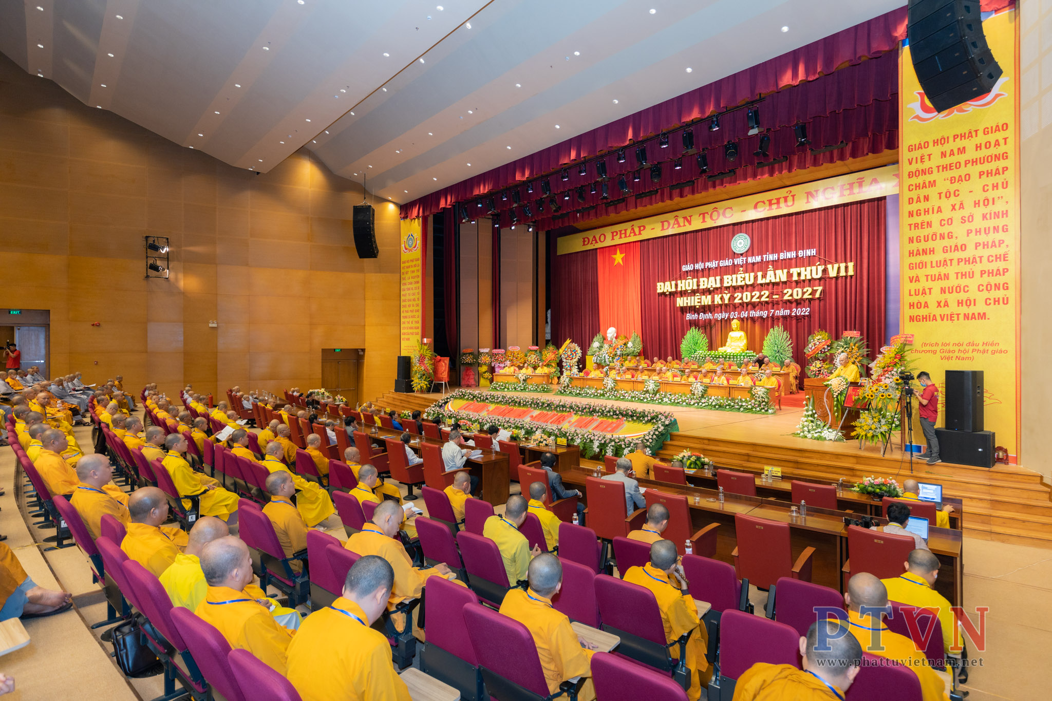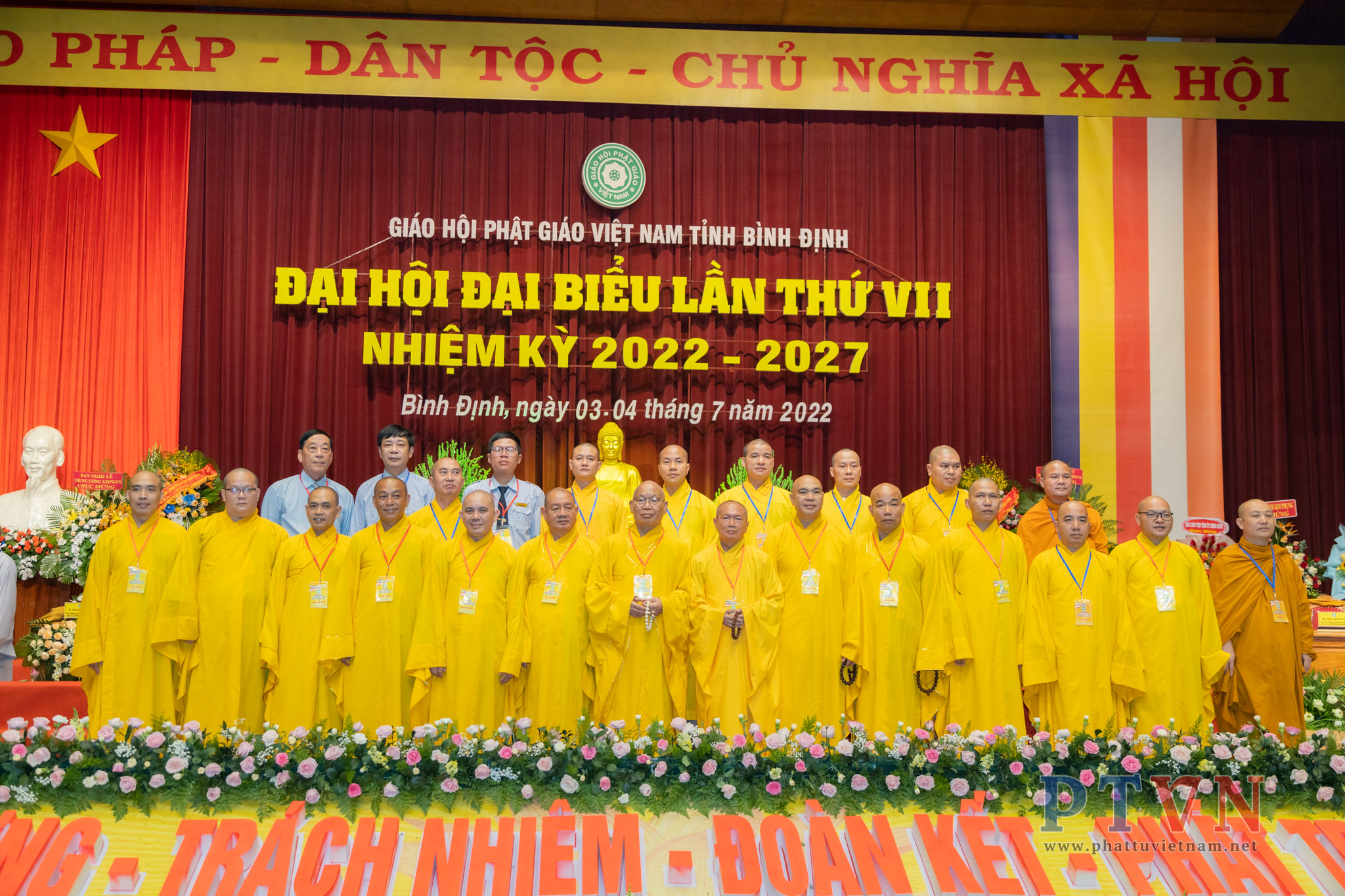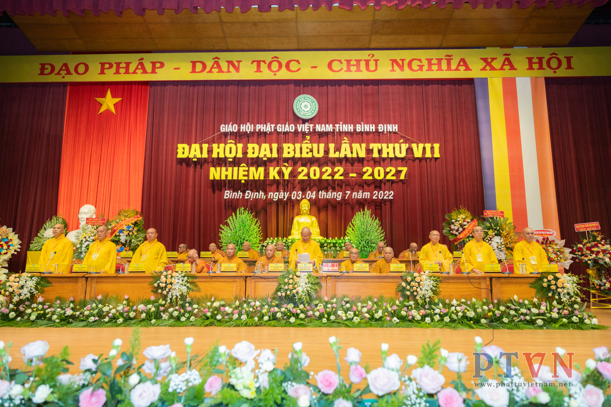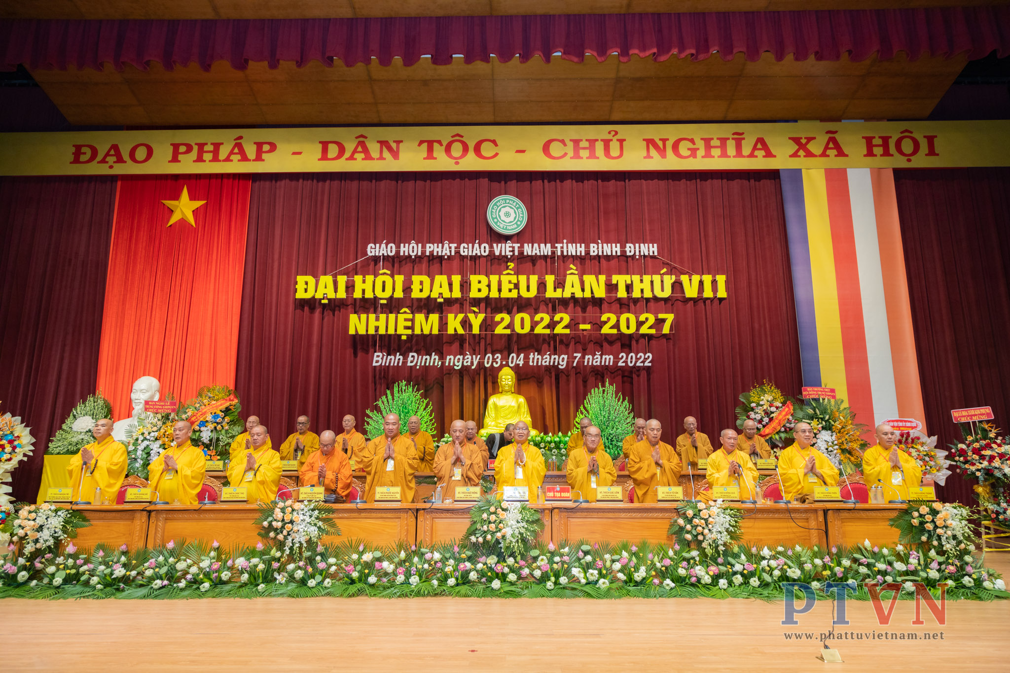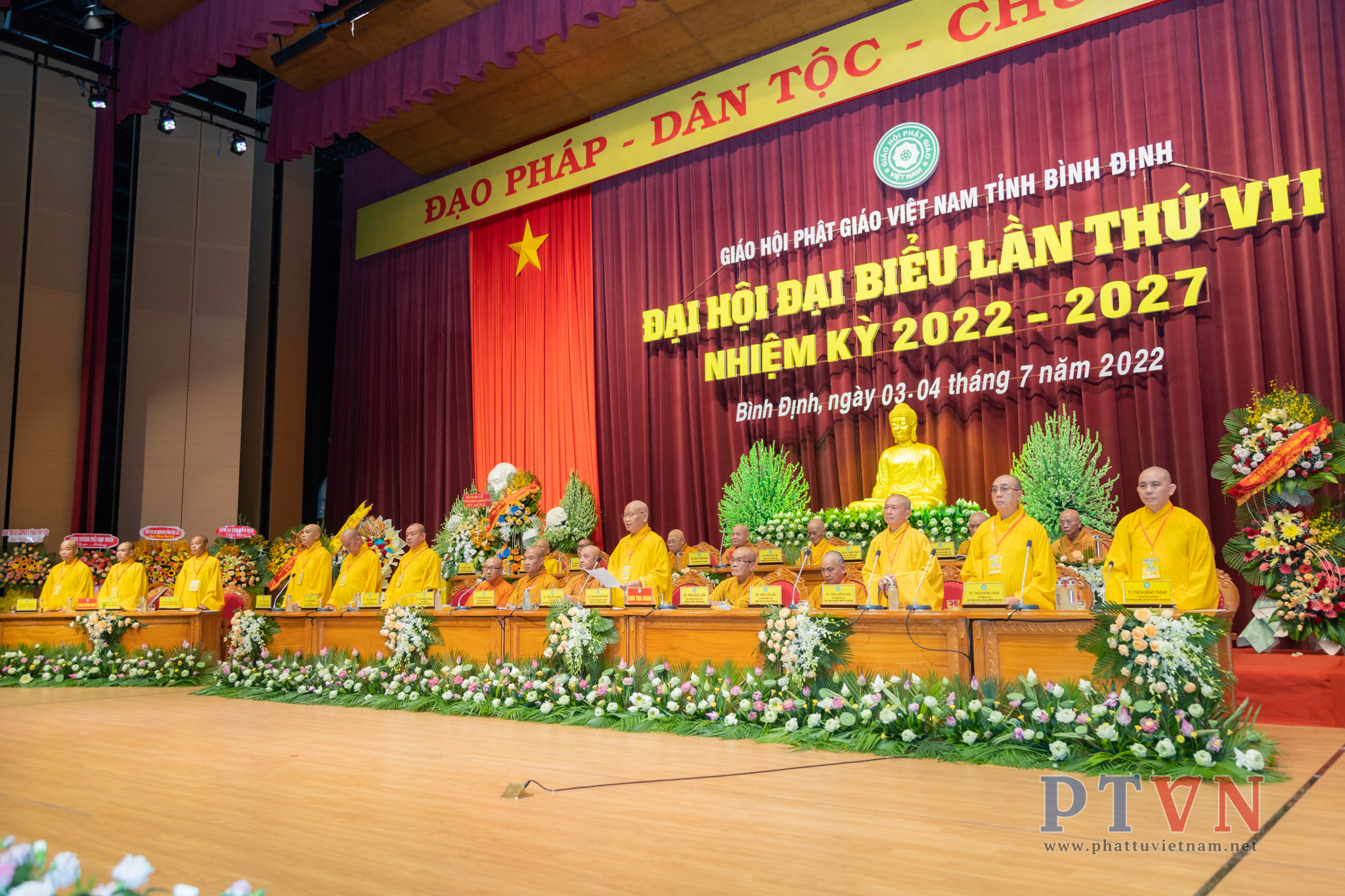 PTVN – Sáng nay ngày 04/7/2022, tại Trung tâm Hội nghị tỉnh Bình Định (số 1 Nguyễn Tất Thành, Tp.Quy Nhơn) đã trang nghiêm diễn ra Đại hội Đại biểu Phật giáo tỉnh Bình Định lần VII nhiệm kỳ 2022 – 2027 do Ban Trị sự GHPGVN tỉnh Bình Định tổ chức.