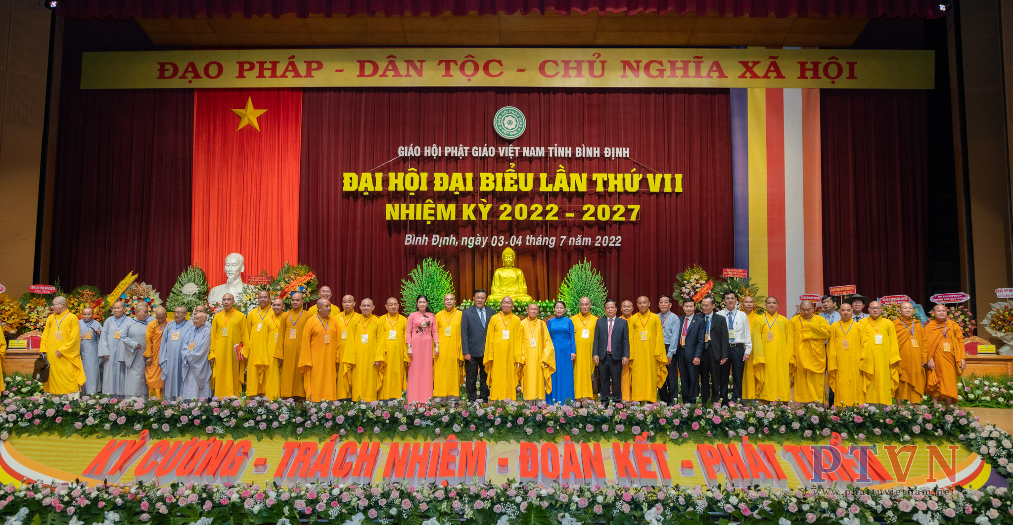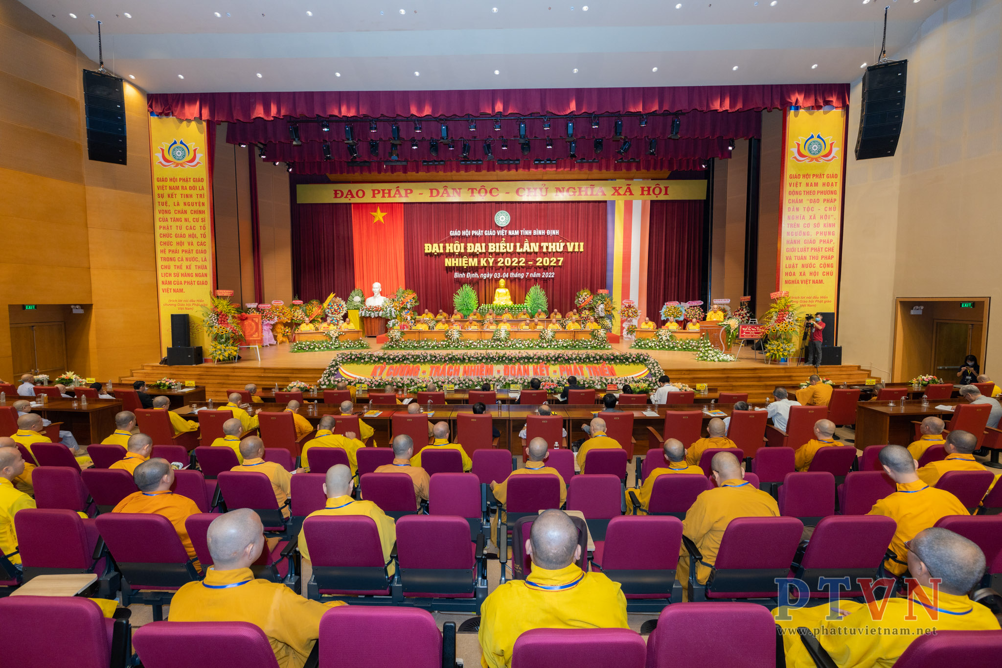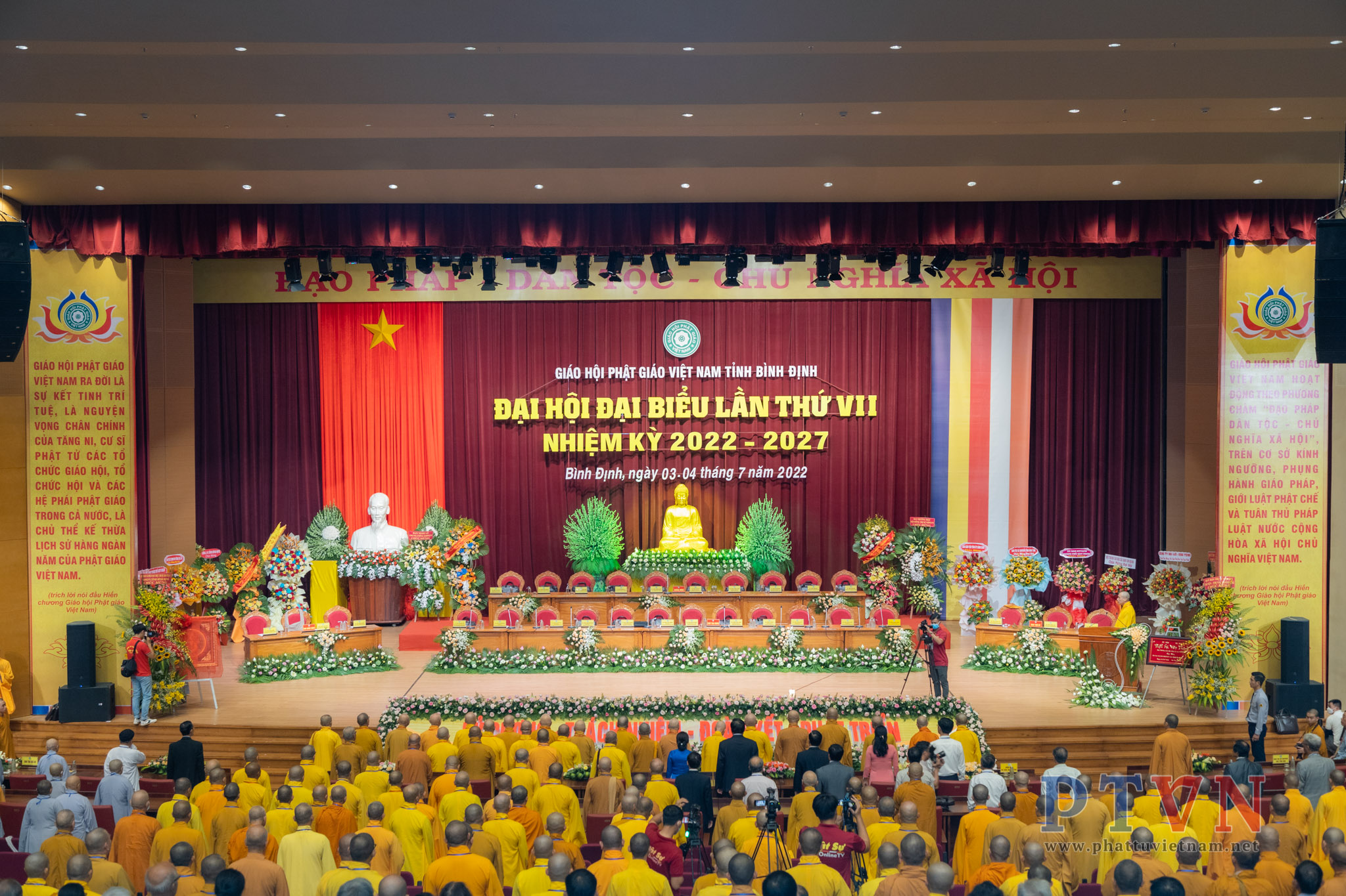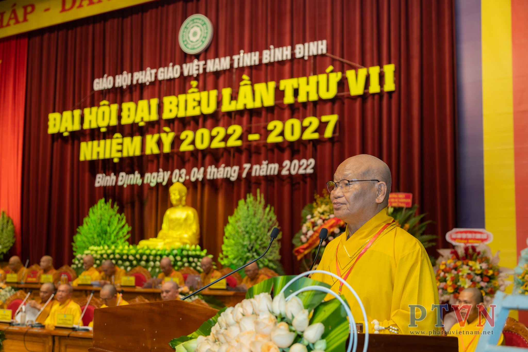 PTVN – Sáng nay ngày 04/7/2022, tại Trung tâm Hội nghị tỉnh Bình Định (số 1 Nguyễn Tất Thành, Tp.Quy Nhơn) đã trang nghiêm diễn ra Đại hội Đại biểu Phật giáo tỉnh Bình Định lần VII nhiệm kỳ 2022 – 2027 do Ban Trị sự GHPGVN tỉnh Bình Định tổ chức.