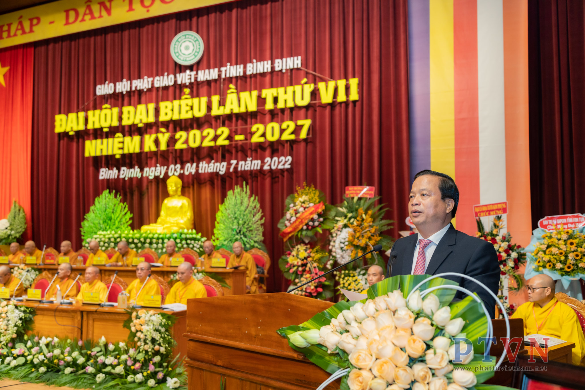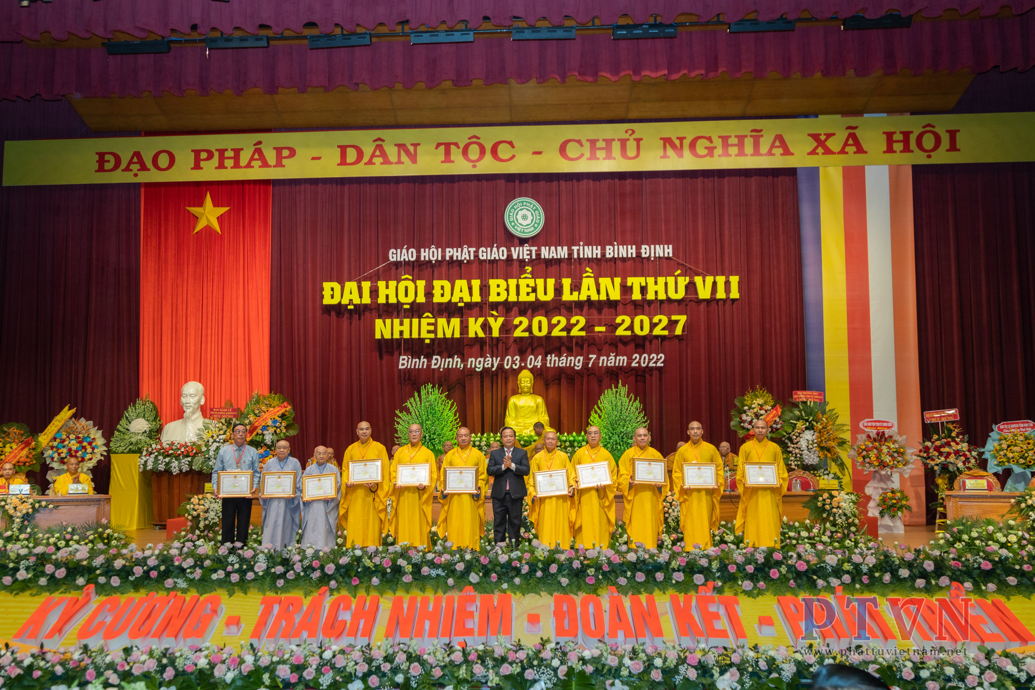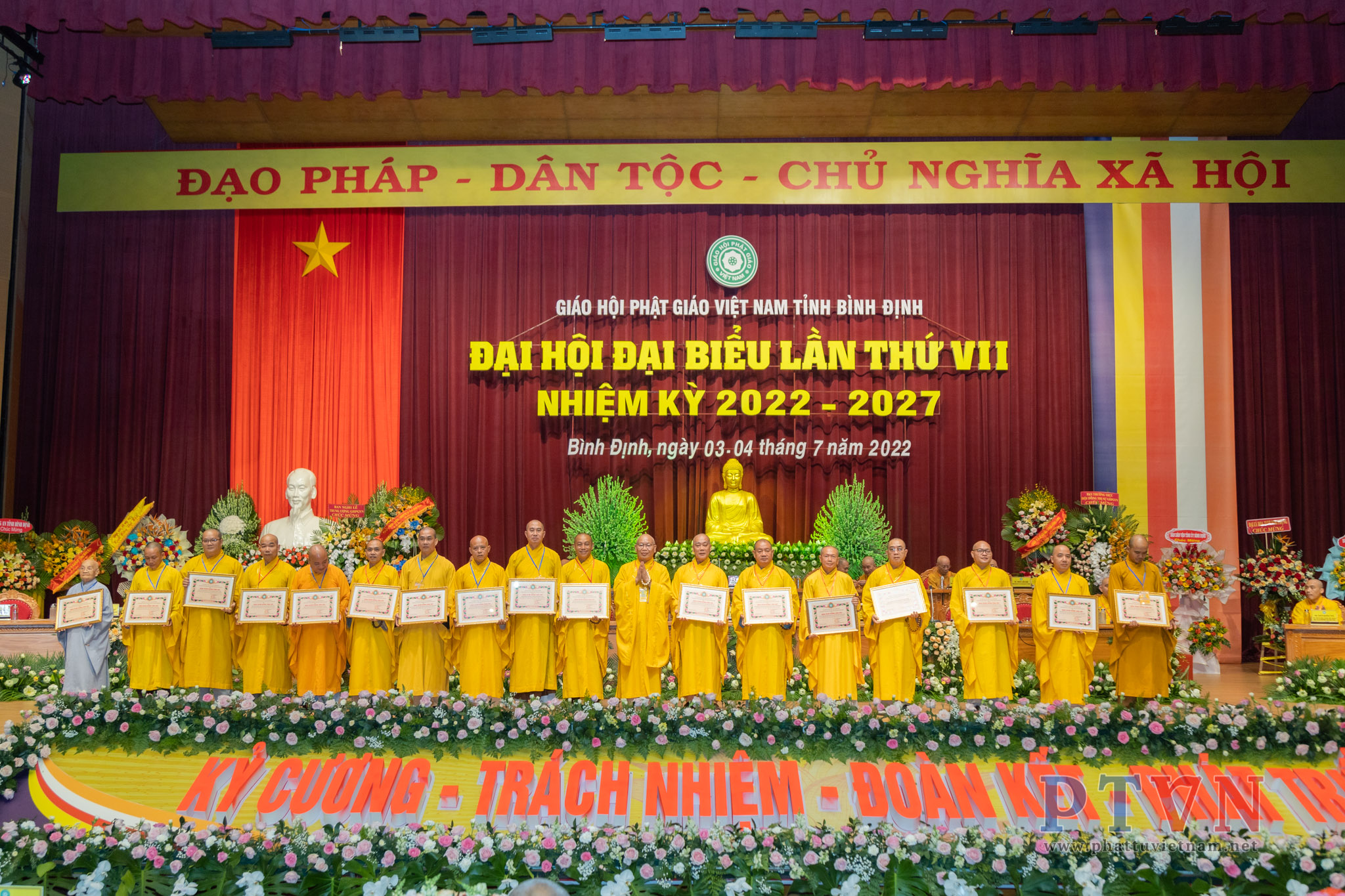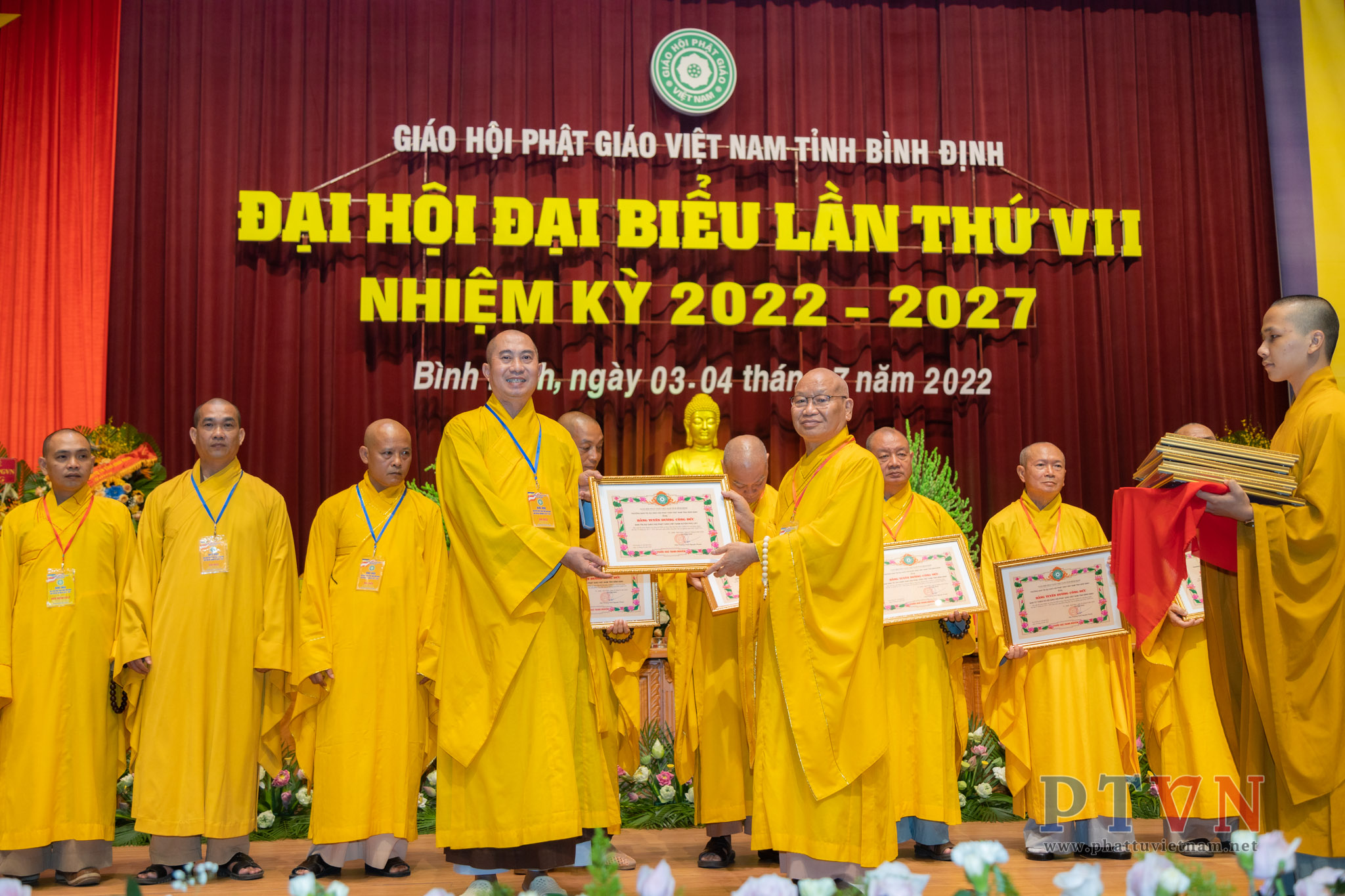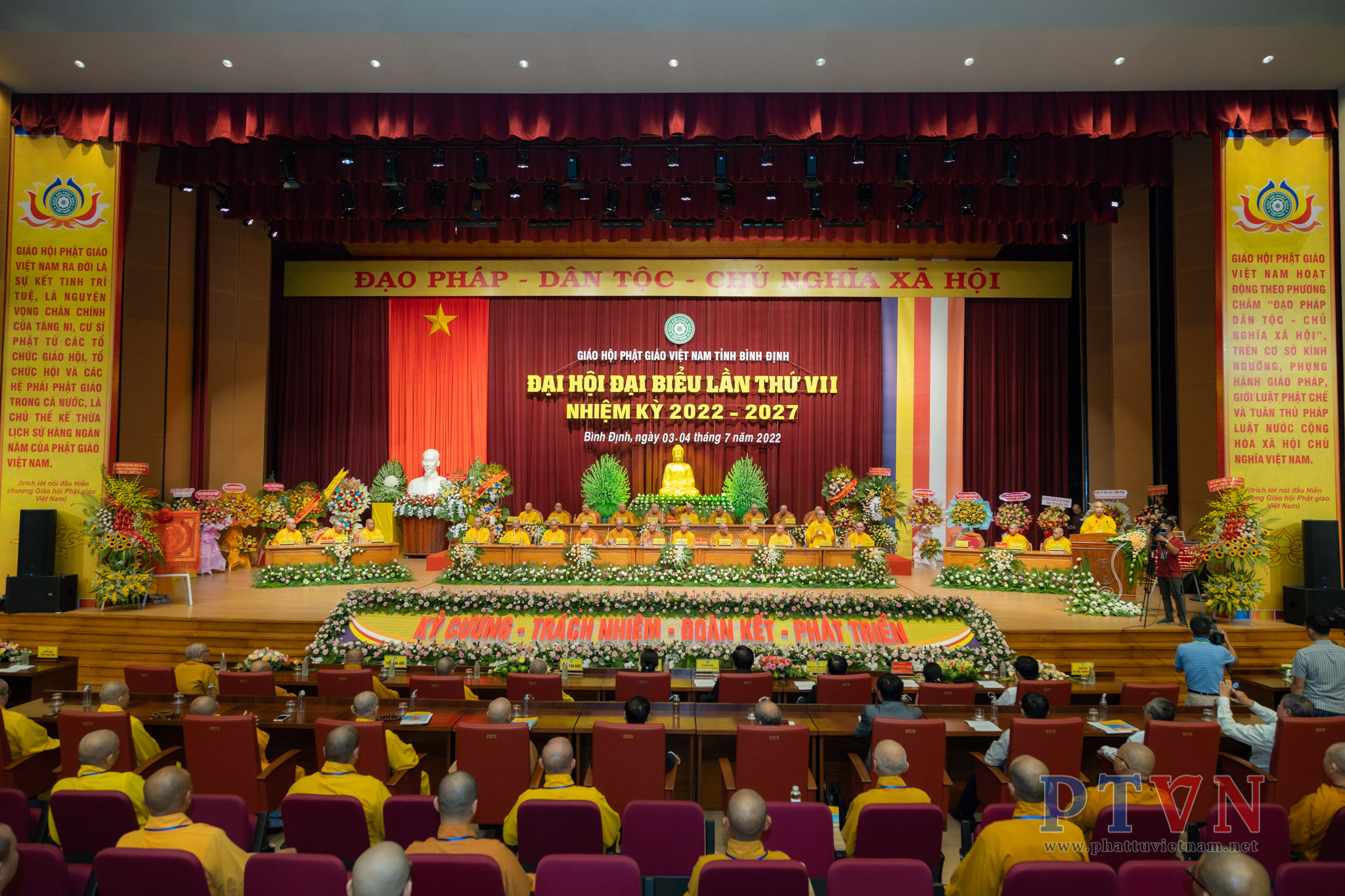 PTVN – Sáng nay ngày 04/7/2022, tại Trung tâm Hội nghị tỉnh Bình Định (số 1 Nguyễn Tất Thành, Tp.Quy Nhơn) đã trang nghiêm diễn ra Đại hội Đại biểu Phật giáo tỉnh Bình Định lần VII nhiệm kỳ 2022 – 2027 do Ban Trị sự GHPGVN tỉnh Bình Định tổ chức.