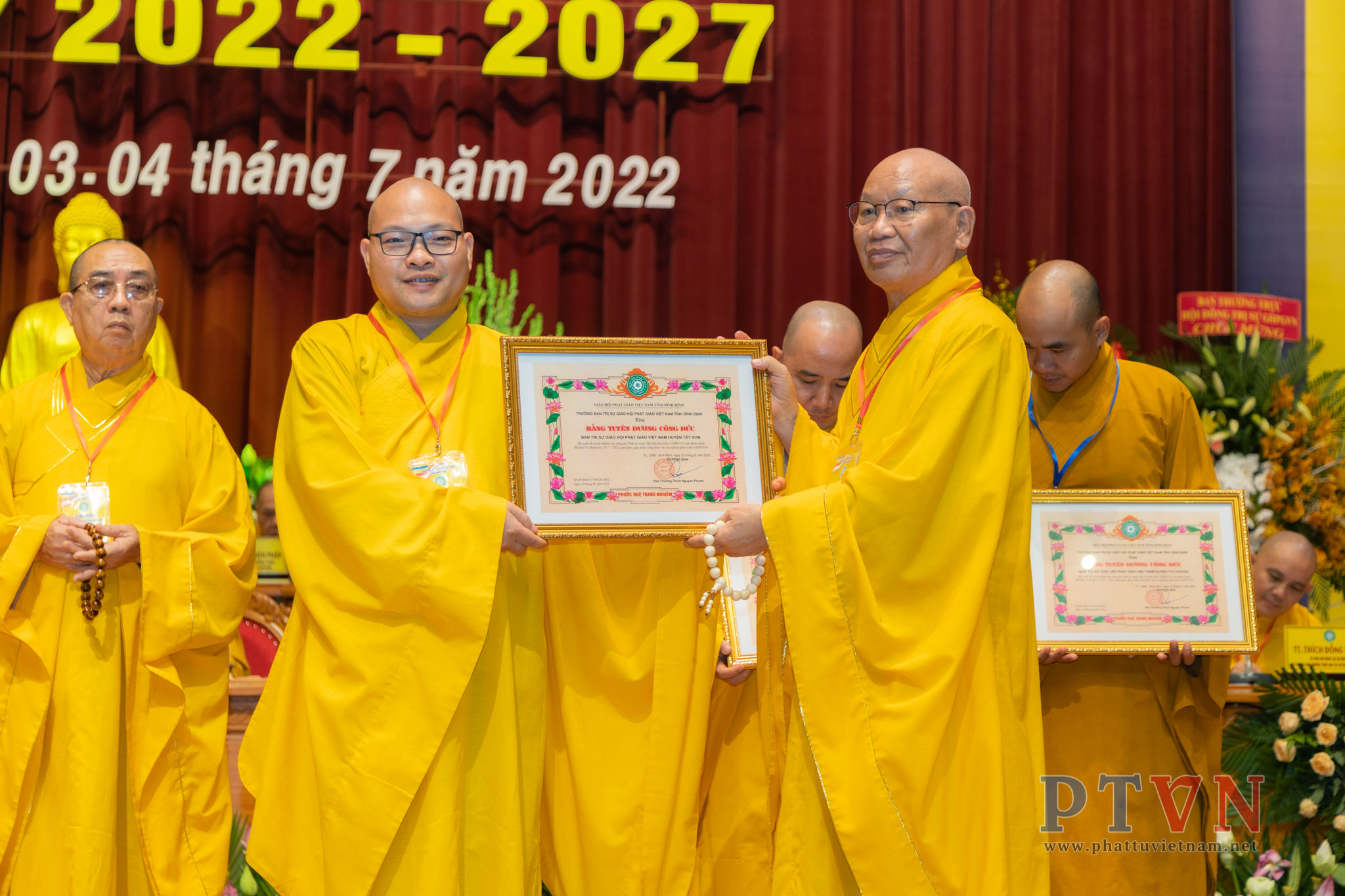 Với những thành tựu Ban Trị sự Phật giáo tỉnh Bình Định đã đạt được, Trung ương Giáo hội tặng Bằng tuyên dương công đức đến 1 tập thể và 5 cá nhân.