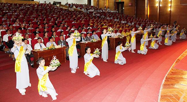 Sau phần thủ tục Niệm Phật, chào Quốc kỳ, Đạo kỳ, và phút tưởng niệm chư anh linh Thánh Tử Đạo, chư anh hung liệt sĩ, chư tiền bối hữu công…Đại hội chính thức cung cử chư tôn lãnh đạo Trung ương Giáo hội và các tỉnh thành quang lâm Chứng minh Đại hội.