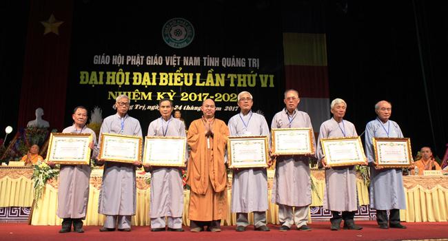 Tại Đại hội, Trung ương Giáo hội và các cấp Chính quyền đã có quyết định tặng bằng tán dương công đức và bằng khen để ghi nhận công đức đóng góp cho Ban Trị sự GHPGVN tỉnh Quảng Trị, các tập thể và cá nhân mà đã có những đóng góp cho Giáo hội và đất nước.