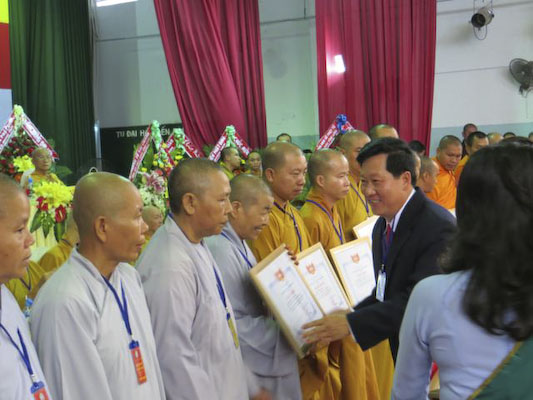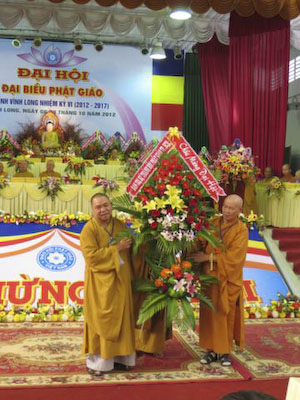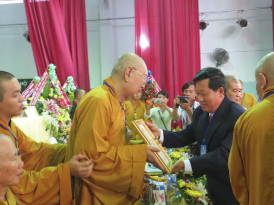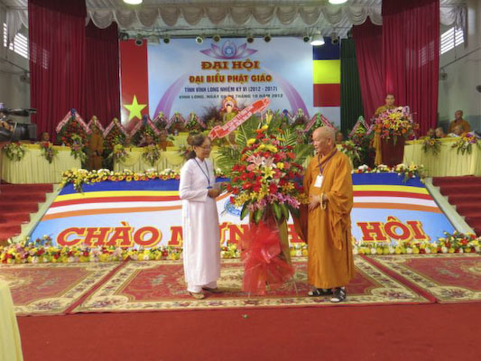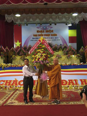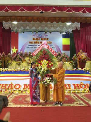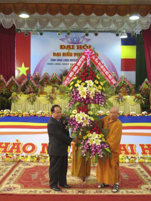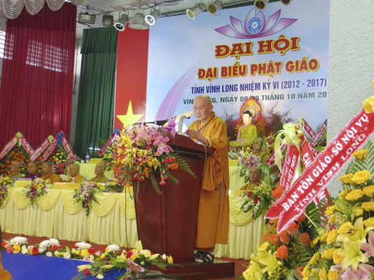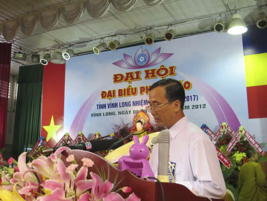 Ông Nguyễn Văn Thanh, Ủy viên Thường vụ tỉnh ủy, phó chủ tịch UBND tỉnh Vĩnh Long phát biểu trước đại hội, ghi nhận những đóng góp của BTS THPG Vĩnh Long trong suốt nhiệm kỳ qua đối với tỉnh nhà. Theo đó, Ông rất kính trọng đối với các vị tôn túc trong BTS tỉnh đã hướng dẫn Tăng Ni Phật tử tỉnh nhà thực hiện tốt nhiều công tác ích đạo lợi đời theo đúng phương châm phụng sự chúng sanh là cúng dường chư Phật. Ông mong mỏi tân BTS sẽ thực hiện tốt nhiều hơn nữa những Phật sự của mình để đem lại hiệu quả trong công việc mà chương trình hoạt động nhiệm kỳ VI đề ra, đối với các lãnh đạo chính quyền các cấp ủy đảng trong tỉnh Vĩnh Long sẽ luôn sát cánh, quan tâm, giúp đỡ hết long để Tân BTS thực hiện tốt những công việc của mình.
