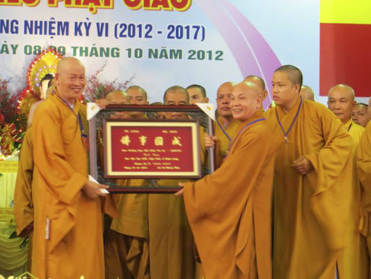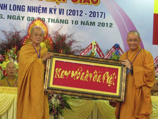 Sau khi Ban Trị Sự THPG Vĩnh Long nhiệm kỳ V tuyên bố mãn nhiệm, Ban nhân sự đã giới thiệu danh sách dự kiến thành phần nhân sự nhiệm kỳ VI (2012-2017). HT. Thích Thiện Nhơn thay mặt HĐTS lấy ý kiến trước đại hội về nhân sự nhiệm kỳ mới. Cuối cùng cả đại hội thống nhất suy cử Ban Chứng Minh BTS gồm 8 vị Hòa Thượng, Ban Trị Sự gồm 55 thành viên, trong đó có 47 vị chính thức, 8 vị dự khuyết. HT. Thích Đắc Pháp tái đắc cử Trưởng Ban Trị Sự THPG Vĩnh Long nhiệm kỳ VI.