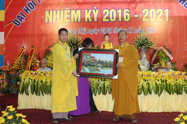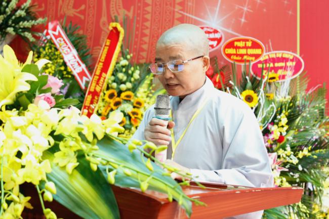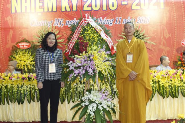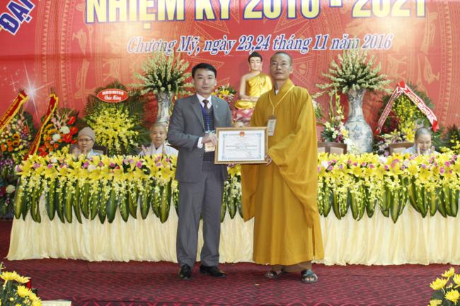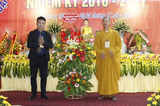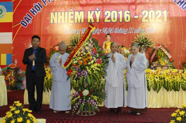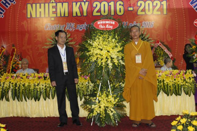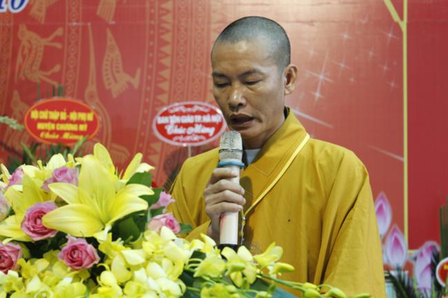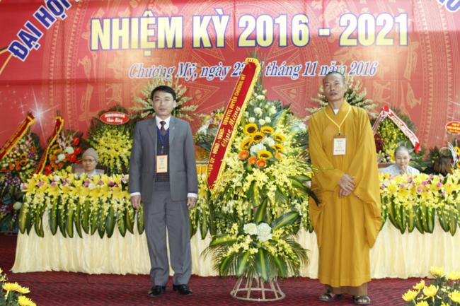 Tại đại hội, ông Hoàng Minh Hiến – Phó Chủ tịch UBND Huyện Chương Mỹ đã có lời phát biểu và tặng hoa chúc mừng. Ông mong muốn mỗi Tăng ni, Phật tử, mỗi người con Phật trên địa bàn huyện tưởng nhớ về Đức Phật – bậc khai đạo, chỉ đạo và hướng đạo để mỗi Tăng ni, Phật tử luôn hướng về những giá trị tốt đẹp của cuộc sống bằng những việc làm cụ thể, thiết thực, đóng góp xây dựng, một xã hội hoà bình, hạnh phúc, an lạc, đúng như hạnh nguyện của Ngài.