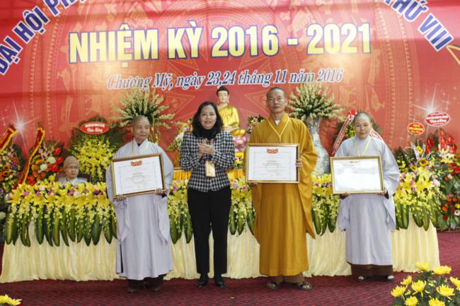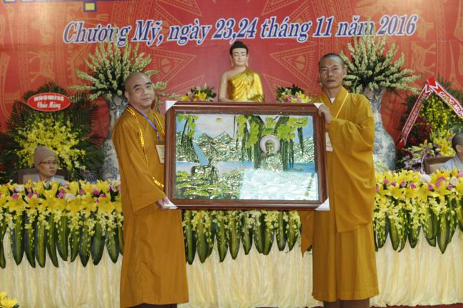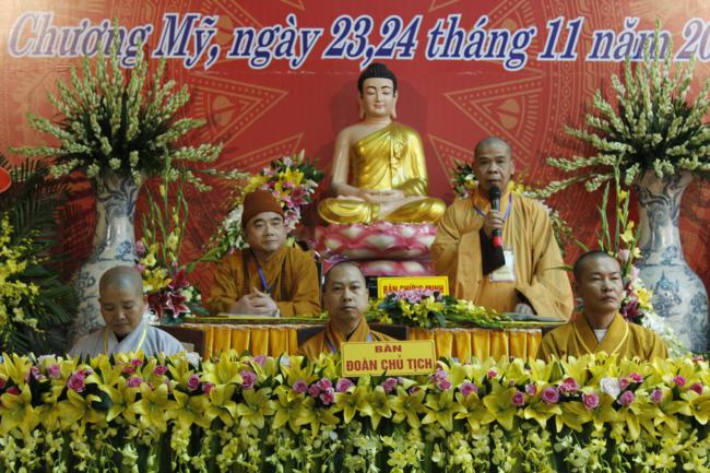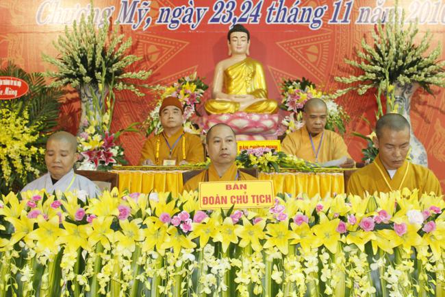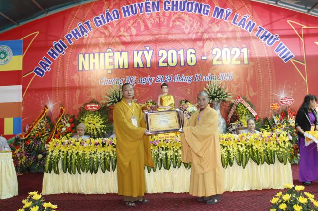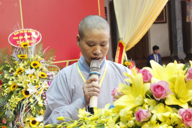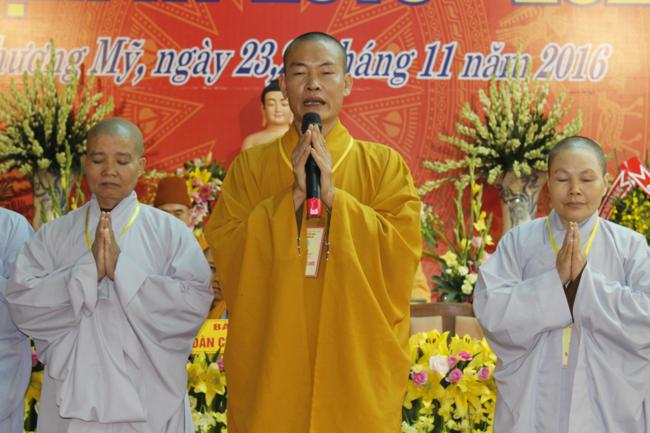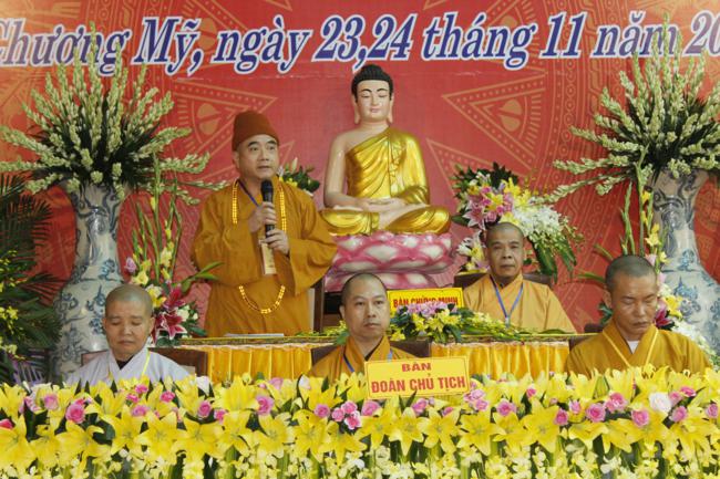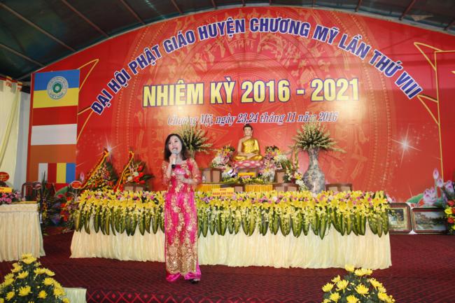 Sau diễn văn khai mạc, Ni sư Thích Đàm Loan – Thư ký BTS GHPGVN Huyện Chương Mỹ đọc báo cáo tổng kết công tác Phật sự nhiệm kỳ VII (2012-2016) và phương hướng hoạt động Phật sự nhiệm kỳ VIII (2016-2021). Bản báo cáo nêu rõ: