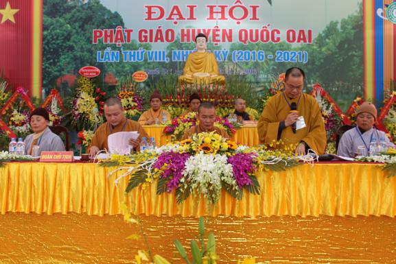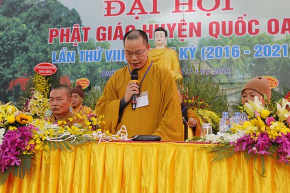 Sau nghi thức niệm Phật cầu gia hộ, chào Quốc kỳ Đạo kỳ, Đại đức Thích Đạo Vĩnh – Uỷ viên BTS GHPGVN TP. Hà Nội đã đọc diễn văn khai mạc đại hội Đại hội Phật giáo huyện Quốc Oai lần thứ VIII, nhiệm kỳ 2016 – 2021.