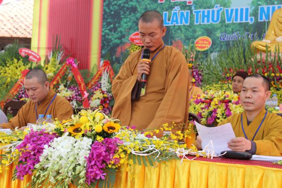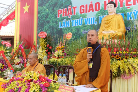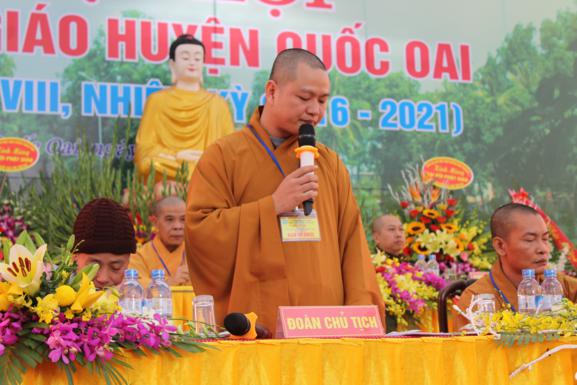 Tiếp đó, Đại đức Thích Đạo Duyên – Phó Trưởng ban kiêm Chánh Thư ký GHPGVN huyện Quốc Oai đọc báo cáo tổng kết công tác Phật sự nhiệm kỳ VII (2012-2016) và đọc phương hướng hoạt động Phật sự nhiệm kỳ VIII (2016-2021).