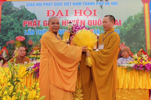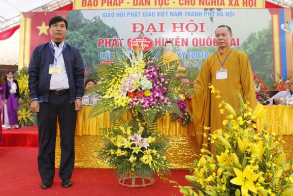 Tại đại hội, ông Đỗ Lai Luật – Uỷ viên Phó Chủ tịch UBND huyện Quốc Oai cũng đã có lời phát biểu và tặng hoa chúc mừng. Ông mong rằng với nhiệm kỳ mới với cơ cấu thành phần tiêu biểu, uy tín, trí tuệ, được sự tín nhiệm suy cử của các đại biểu sẽ đủ sức đảm trách, điều hành công tác Phật sự theo hiến chương, đường hướng, phương châm “Đạo pháp – Dân tộc – Chủ nghĩa Xã hội”. Ban trị sự Phật giáo tiếp tục là cầu nối quan trọng giữa Phật tử, giáo hội và chính quyền để chung tay xây dựng và phát triển quê hương giàu mạnh.