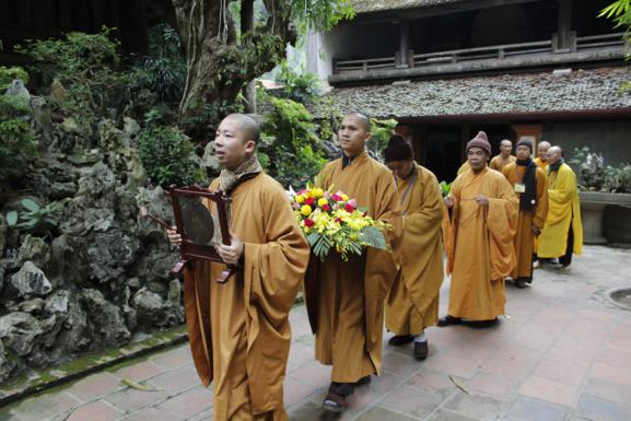 Chứng minh buổi lễ có : TT Thích Thanh Chính – Uỷ viên thường trực HĐTS, Phó Trưởng ban thường trực BTS GHPGVN TP. Hà Nội; TT Thích Minh Trí – Uỷ viên HĐTS GHPGVN, Chánh văn phòng BTS GHPGVN TP. Hà Nội; ĐĐ Thích Minh Tín – Uỷ viên thường trực BTS kiêm Trưởng ban Giáo dục Tăng Ni GHPGVN TP. Hà Nội; ĐĐ Thích Đạo Phong – Uỷ viên HĐTS, Phó Thư ký kiêm Phó văn phòng BTS GHPGVN TP. Hà Nội; ĐĐ Thích Đạo Vĩnh – Uỷ viên BTS GHPGVN TP. Hà Nội, Trưởng BTS GHPGVN huyện Quốc Oai cùng chư tôn Đức Tăng, Ni trong huyện Quốc Oai.