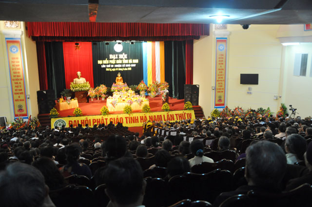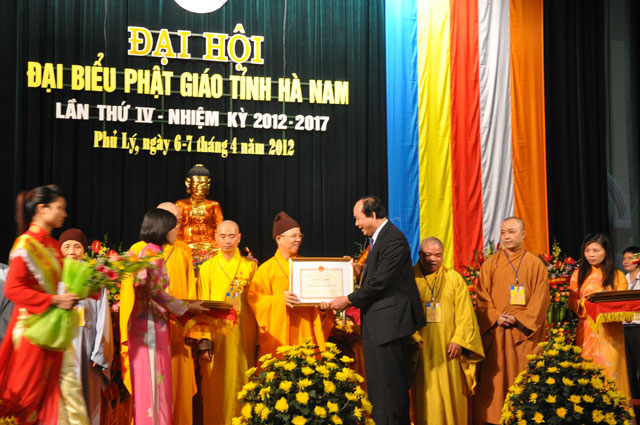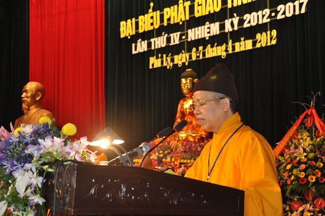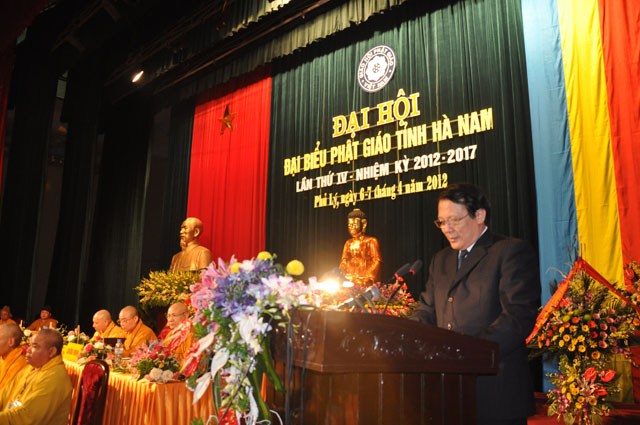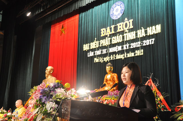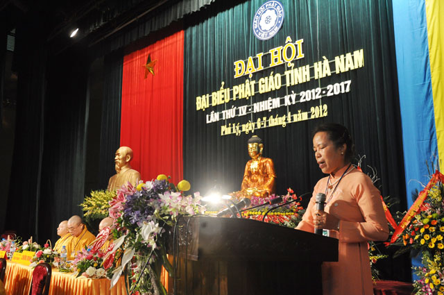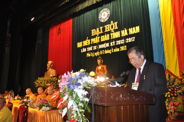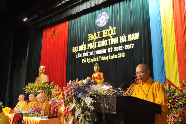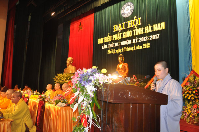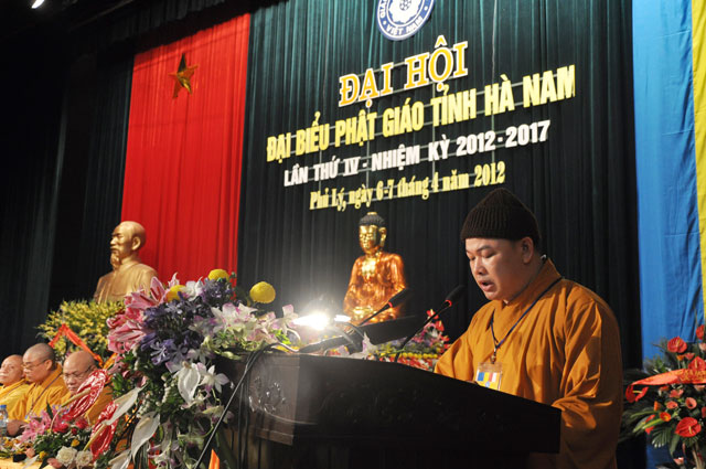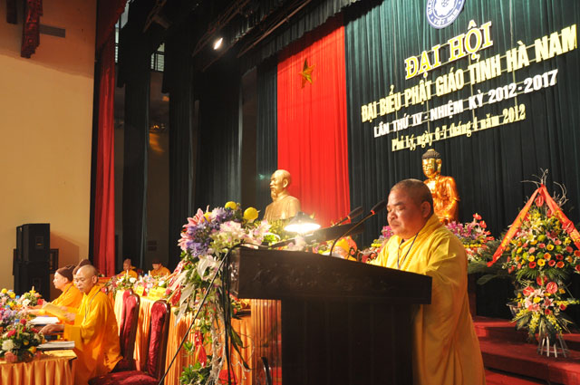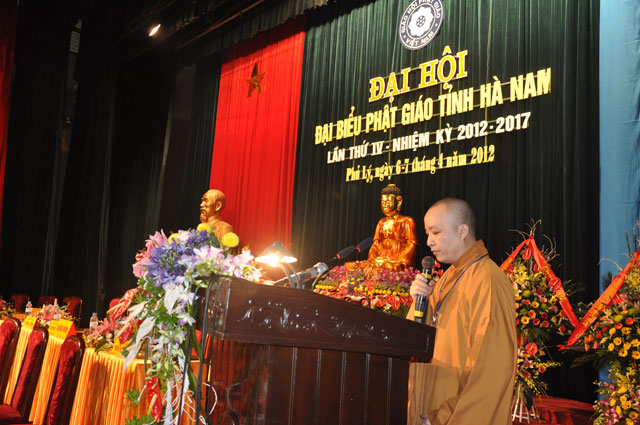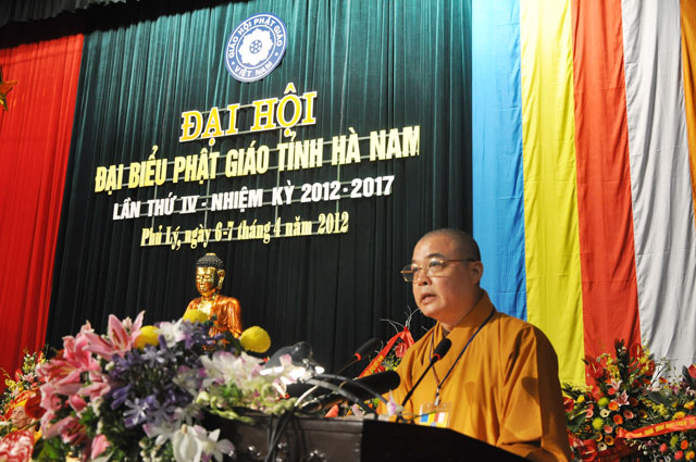 Sau diễn văn khai mạc của TT Thích Thanh Quyết, ĐĐ Thích Quảng Bảo đọc báo cáo tổng kết nhiệm kỳ III (2002-2012) chương trình Phật sự nhiệm kỳ IV (2012-2017) của tỉnh hội Phật giáo Hà Nam.