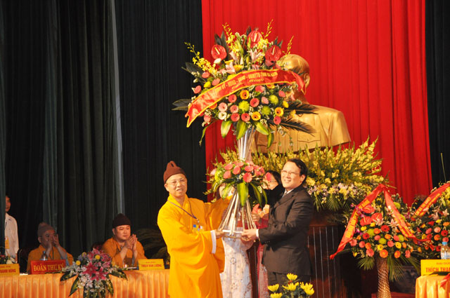 Về phía chính quyền có ông Nguyễn Mạnh Hùng – Phó ban dân vận TW; ông Hà Văn Núi – Phó chủ tịch MTTQ Việt Nam; ông Bùi Thanh Hà – Phó Ban Tôn giáo chính phủ cùng các vị đại diện lãnh đạo các cơ quan Bộ, ban ngành TW, lãnh đạo HĐND, UBND, MTTQ tỉnh Hà Nam các và hơn 1.000 đại biểu phật tử tiêu biểu trong toàn tỉnh tham dự đại hội.