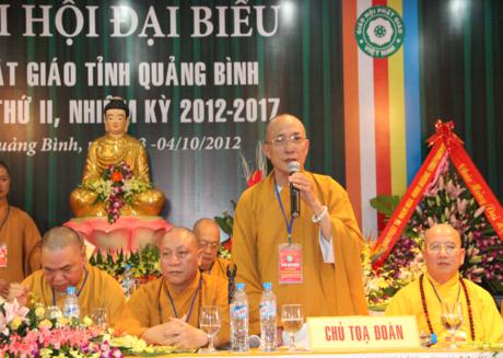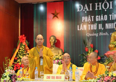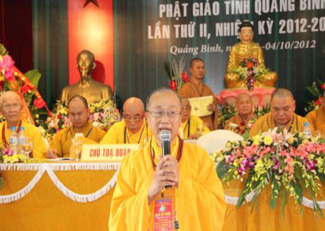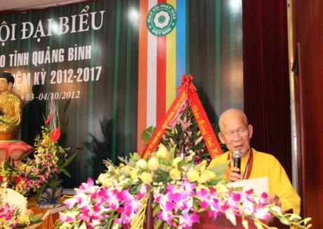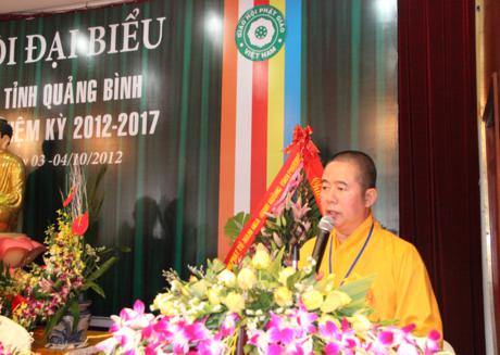 Đại hội đã được nghe lời đạo từ của HT Thích Thiện Nhơn thay mặt HĐTS TW GHPGVN, Hòa thượng đã ghi nhận những thành tựu các công tác Phật sự của BTS Phật giáo tỉnh Quảng Bình đã đạt được trong thời gian qua. Tăng Ni Phật tử tích cực tham gia các mặt hoạt động Phật sự của Tỉnh hội thông qua sự hướng dẫn của các Ban ngành Hoằng pháp, văn hóa, hướng dẫn Phật tử có nếp sống văn hóa.