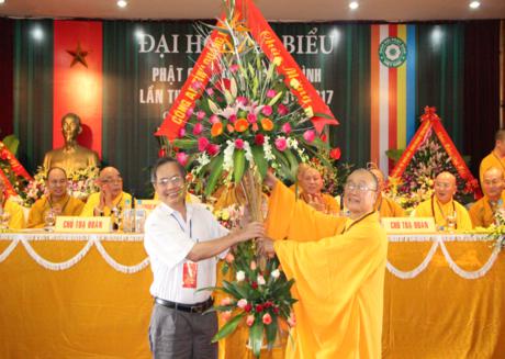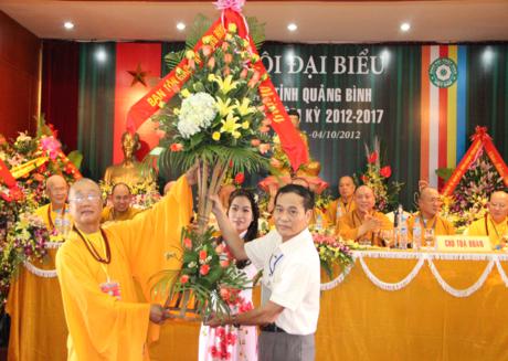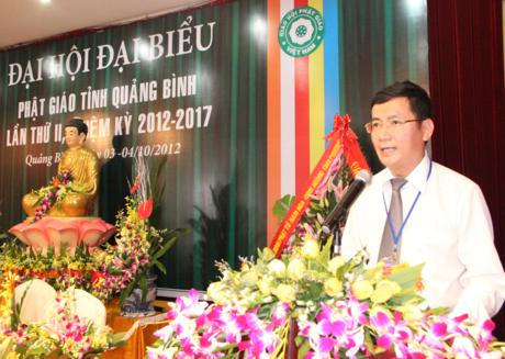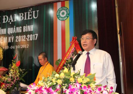 Nhân dịp này ông Trần Tiến Dũng- Ủy viên thường vụ, Phó chủ tịch UBND Tỉnh Quảng Bình đại diện lãnh đạo chính quyền Tỉnh Quảng Bình, ông Bùi Hữu Dược vụ trưởng vụ Phật giáo-Ban tôn giáo Chính phủ, đai diện chính quyền TW phát biểu chúc mừng Đại hội.