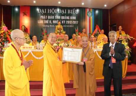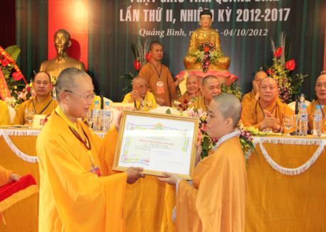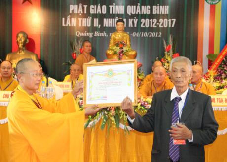 Tại Đại hội đã được đón nhận bằng tuyên dương công đức của TW GHPGVN, bằng khen của UBND, MTTQ tỉnh Quảng Bình trao tặng.