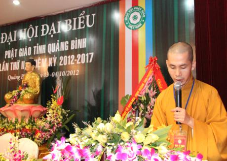 Tại Đại hội, Đạo hữu Hoàng Gia Hy – Chánh thư ký BTS PG tỉnh Quảng Bình đã báo cáo công tác Phật sự nhiệm kỳ 2007 – 2012 và phương hướng hoạt động Phật sự nhiệm kỳ 2012 – 2017.