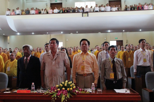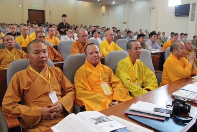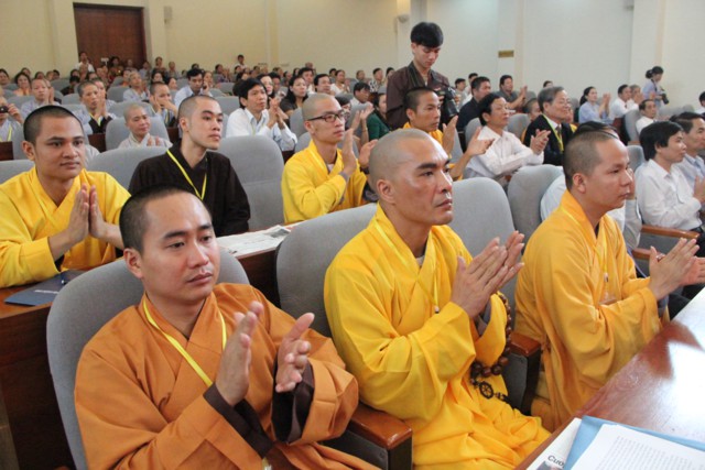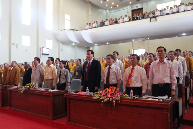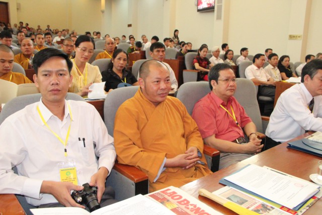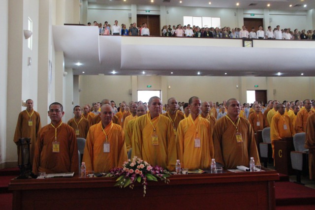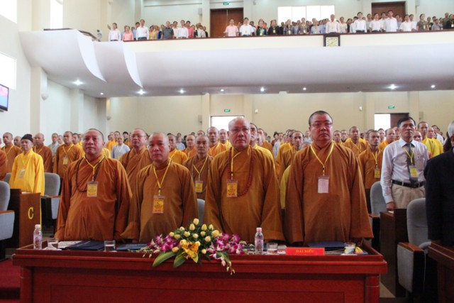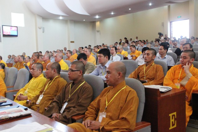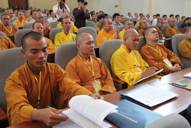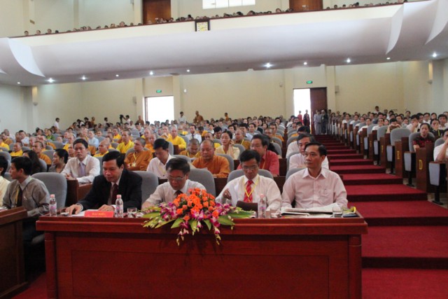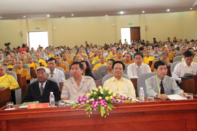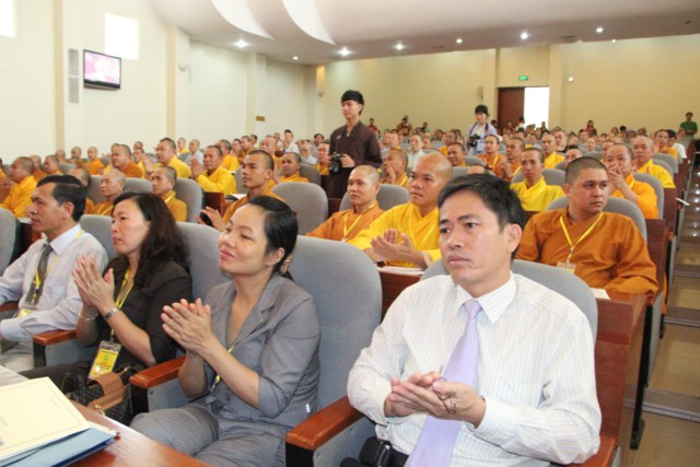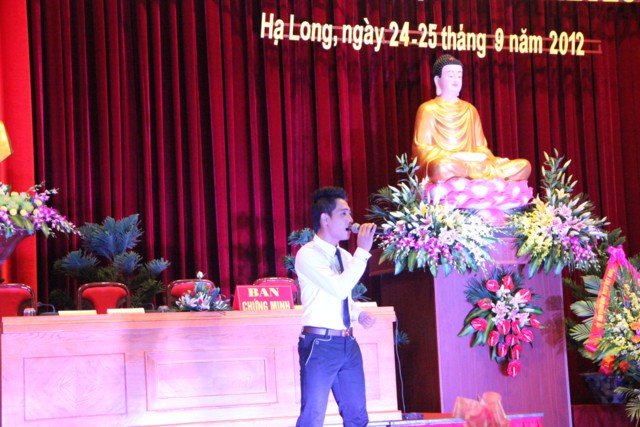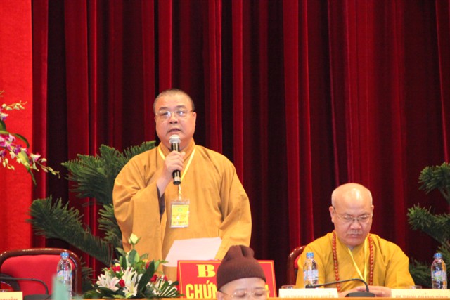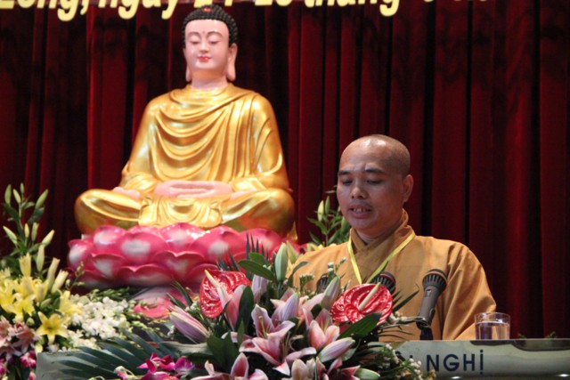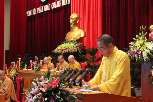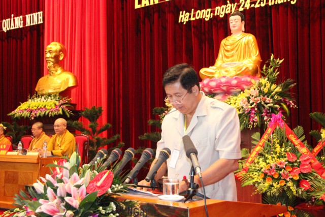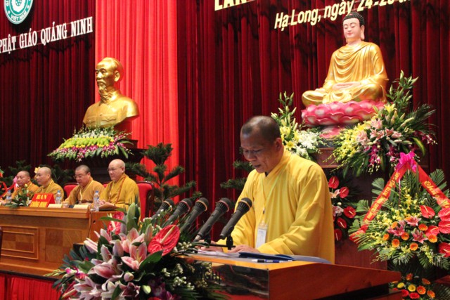 Thượng tọa Thích Đạo Quang – Phó thường trực BTS Phật giáo tỉnh Quảng Ninh đọc báo cáo tổng kết công tác Phật sự nhiệm kỳ II (2007 – 2012) và phương hướng hoạt động nhiệm kỳ III (2012 – 2017). Bản báo cáo đã nhấn mạnh những thành tích trên các lĩnh vực: Tăng sự, hoằng pháp, văn hóa, giáo dục Tăng Ni, nghi lễ , hướng dẫn Phật tử ….trong tinh thần đoàn kết, hòa hợp.