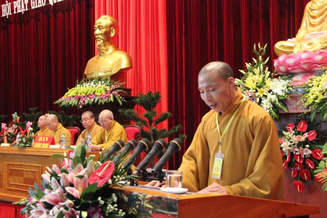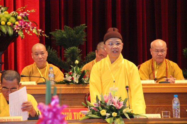 TT Thích Thanh Quyết thay mặt toàn BTS tuyên bố mãn nhiệm, đồng thời trình danh sách nhân sự nhiệm kỳ VIII trong BTS Phật giáo Tỉnh Quảng Ninh.