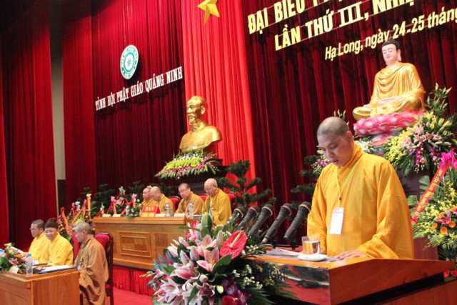 Đại hội đại biểu Phật giáo tỉnh Quảng Ninh lần thứ III, nhiệm kỳ 2012-2017 kêu gọi toan thể Tăng Ni Phật tử tỉnh Quảng Ninh tiếp tục phát huy truyền thống yêu nước gắn bó với dân tộc của Phật giáo Việt Nam, tăng cường đoàn kết hòa hợp, nỗ lực đóng góp vào các hoạt động “ích đạo lợi đời” theo phương châm của giáo hội “Đạo pháp – dân tộc – CNXH”, xây dựng Phật giáo tỉnh Quảng Ninh ngày một xương minh trong lòng dân tộc, góp phần xây dựng tỉnh Quảng Ninh ngày một tươi đẹp và giàu mạnh tất cả vì mục tiêu dân giàu nước mạnh, xã hội dân chủ, công bằng, văn minh.