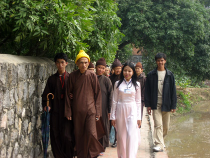 Tháp tùng và thị giả Hòa thượng có một số Đại đức, Sư cô và Cư sĩ Phật tử Tổ đình Viên Minh – Hà Tây.