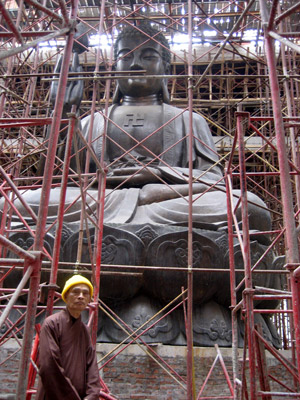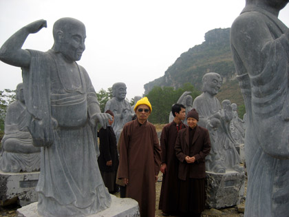 500 vị La hán được tạc bàng đá xanh, mỗi vị cao 2.5 m đã hoàn thành.