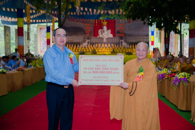 Nhân đây, Ban tổ chức Đại lễ và chùa Phật Quang tỉnh BRVT cũng trao 500 triệu ủng hộ các Gia đình thương binh và liệt sĩ trong cả nước. Thay mặt Trung ương MTTQVN ông Nguyễn Thiên Nhân đã đón nhận từ HT.Thích Thiện Nhơn.