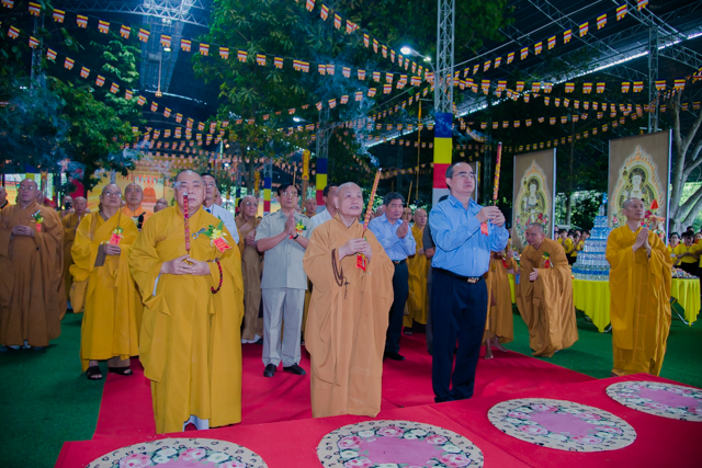 Quang lâm chứng minh và tham dự buổi lễ có: HT.Thích Trí Quảng – Phó Pháp Chủ HĐCM, HT.Thích Giác Cầu – Thành viên thường trực HĐCM, HT. Thích Thiện Nhơn – Chủ tịch HĐTS, HT.Thích Thiện Pháp – Phó chủ tịch thường trực HĐTS kiêm trưởng Ban Tăng sự T.Ư GH, HT.Thích Thiện Tánh – Phó Chủ tịch HĐTS, HT.Thích Huệ Trí – UVTT HĐTS – Trưởng ban pháp chế T.Ư GH, HT.Thích Như Niệm, HT.Thích Huệ Minh, HT.Thích Thiện Đức – đồng Ủy viên TT HĐTS, cùng chư tôn đức giáo phẩm HĐCM, HĐTS, các ban viện TƯGH, Ban Trị sự các tỉnh thành phố và hàng ngàn Tăng, Ni Phật tử các nơi đồng tham dự.