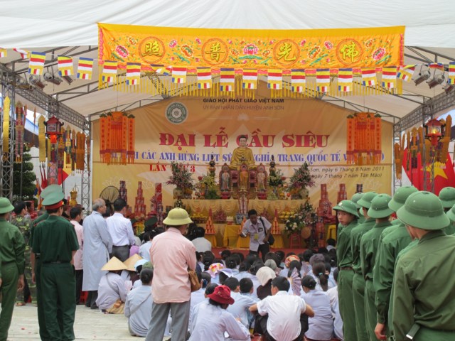 Tham dự có Trung tướng Nguyễn Quốc Thước – Nguyên ủy viên trung ương Đảng, Nguyên tư lệnh Quân khu 4, các mẹ Việt Nam anh hùng, thân nhân các liệt sỹ, đại diện Ban liên lạc quân tình nguyện và chuyên gia quân sự Việt Nam giúp cách mạng Lào, hàng nghìn tăng ni phật tử, gia đình thương binh liệt sỹ và người dân nhiều tỉnh, thành trong cả nước.