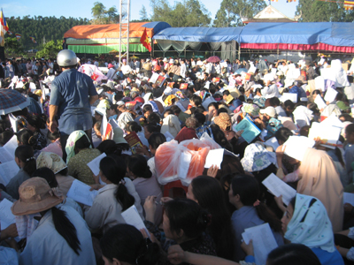 Ghi nhận của PV Dân trí, cùng với người dân địa phương còn có hàng trăm ngàn người từ khắp các tỉnh thành lân cận như Thanh Hóa, Hà Tĩnh… đã đổ về đây để tham dự lễ cầu siêu.
