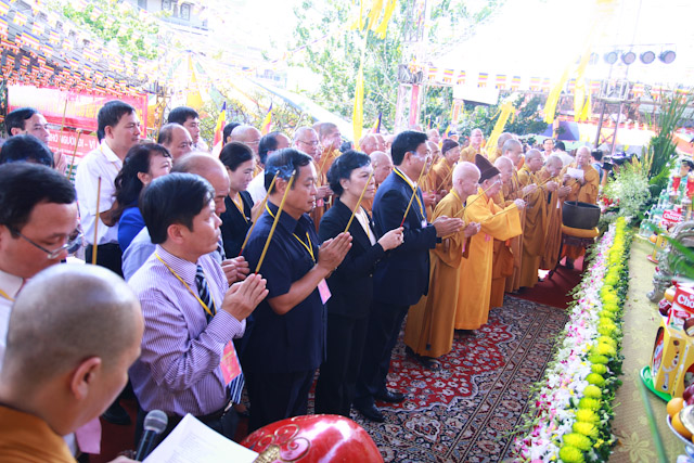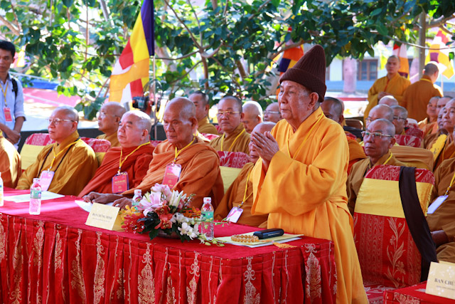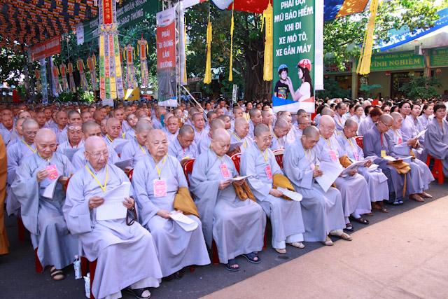 Quang lâm chứng minh và tham dự có HT.Thích Hiển Pháp, HT.Thích Đức Nghiệp – đồng Phó Pháp chủ HĐCM,  HT.Thích Hiển Tu – Phó Thư ký HĐCM cùng chư tôn đức giáo phẩm HĐCM, HT.Thích Thiện Nhơn – Q.Chủ tịch HĐTS, HT.Thích Thanh Nhiễu, HT.Thích Thiện Pháp – đồng Phó Chủ tịch Thường trực HĐTS, HT.Thích Thiện Tánh – Phó Chủ tịch HĐTS – Phó trưởng ban Thường trực BTS GHPGVN TP.HCM, chư Hòa thượng Phó chủ tịch HĐTS,  cùng chư tôn đức Ban Thường trực HĐTS, Văn phòng I, Văn phòng II TƯGH, chư tôn đức Ban, Viện TWGH, BTS GHPGVN các tỉnh, thành phố, và hơn 3000 Tăng Ni, Phật tử các nơi đồng về tham dự.