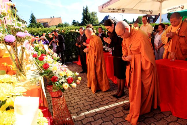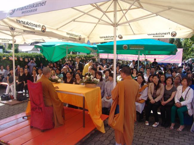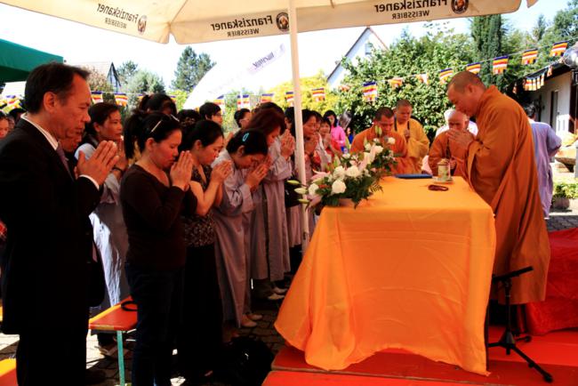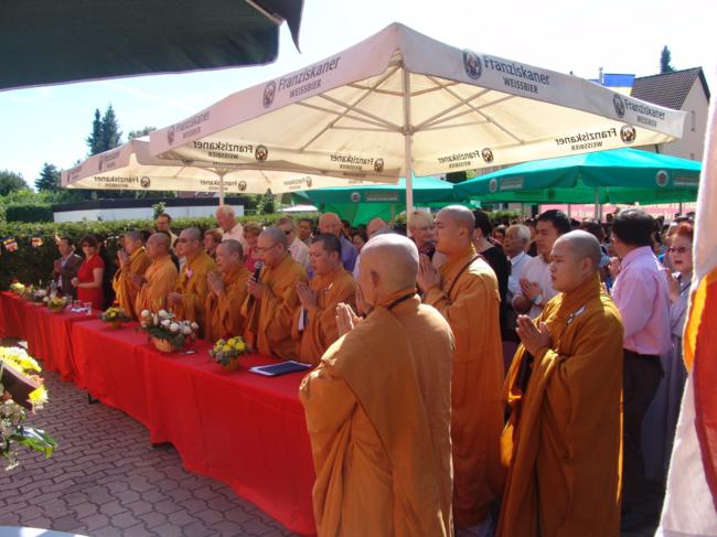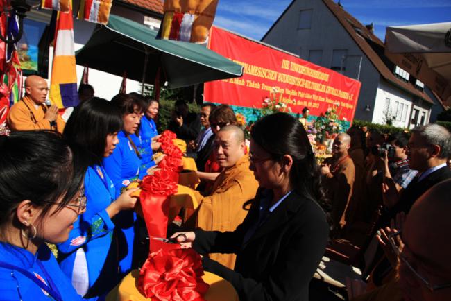 Sau thời pháp thoại của Hòa Thượng là giờ phút long trọng diễn ra buổi lễ khánh thành Chùa Vĩnh Nghiêm Tp. Nurnberg.