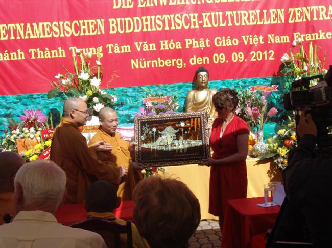 Bà Christine Limbacher, đại diện Tp. Nürnberg, cũng bày tỏ sự vui mừng cho sự ra đời của ngôi chùa Vĩnh Nghiêm tại đây: “Chùa Vĩnh Nghiêm ra đời càng làm tăng thêm tinh thần đoàn kết, đa văn hóa, đa sắc tộc, khẳng định sự thân ái của Tp. Nürnberg nói riêng và nước Đức nói chung về sự hòa hợp giữa các sắc màu văn hóa đạo đức của các dân tộc và tôn giáo”.