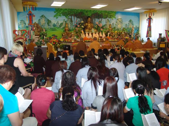 Sau khi long trọng cắt băng khánh thành, dưới sự chủ trì của Hòa Thượng, toàn thể đại chúng đã cùng tụng kinh Vu Lan để cầu nguyện cho quốc thái dân an và cửu huyền thất tổ chư vị vong linh được siêu thăng về miền tịnh cảnh.