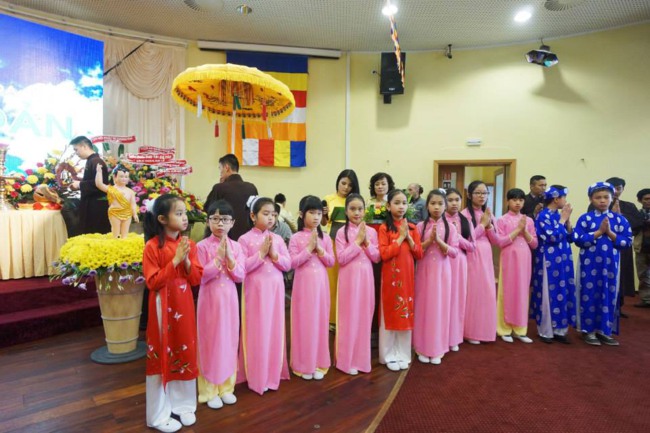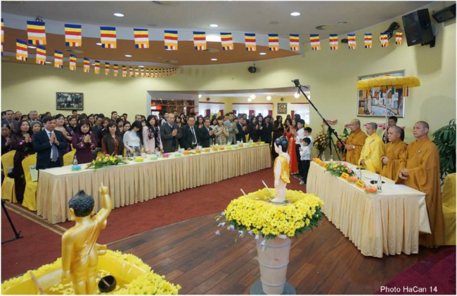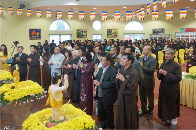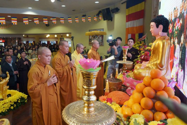 Trong Đại lễ, đoàn thiếu niên dâng hoa cúng dường Đức Phật và Chư tăng, quý Thầy tuyên đọc Thông điệp Phật Đản của đức Pháp chủ. Bà con lắng tâm dõi theo Video Clip về các họat động của Hội Phật Tử. Trong Pháp thoại, Thầy Cố Vấn nhắc tới nghĩa vụ của người con Phật, người công dân nước Việt trước những vấn đề trọng đại của đất nước. Lễ đốt nến Truyền đăng, lễ Khánh Đản diễn ra rất trang nghiêm, cảm động. Cuối cùng, tất cả mọi người tham dự lễ tắm Phật thật hoan hỷ.